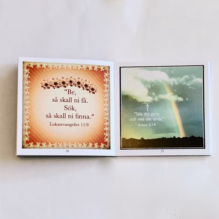 Boken innehåller 99 bilder med underbara bibelcitat. Förhoppningen är att den ska glädja och sprida kärlek.