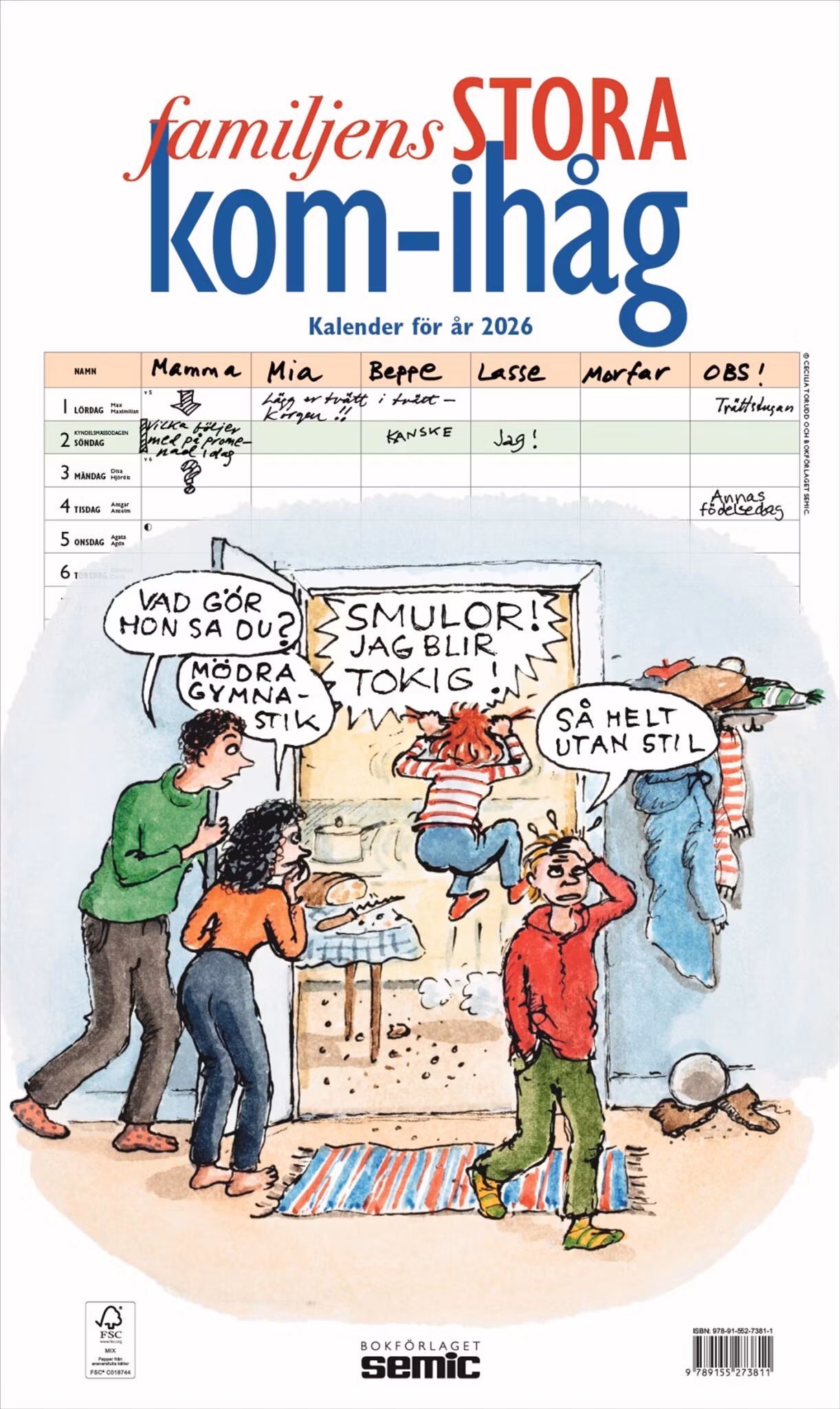 Den perfekta väggkalendern för den stora familjen. Alla månadsblad pryds av Cecilia Torudds träffsäkra Ensamma mamman-illustrationer och har hela sex kolumner för anteckningar. Skriv in allt ni behöver komma ihåg, från tandläkartider och födelsedagar till träningar och möten. Den överskådliga planeringen gör vardagen smidigare!