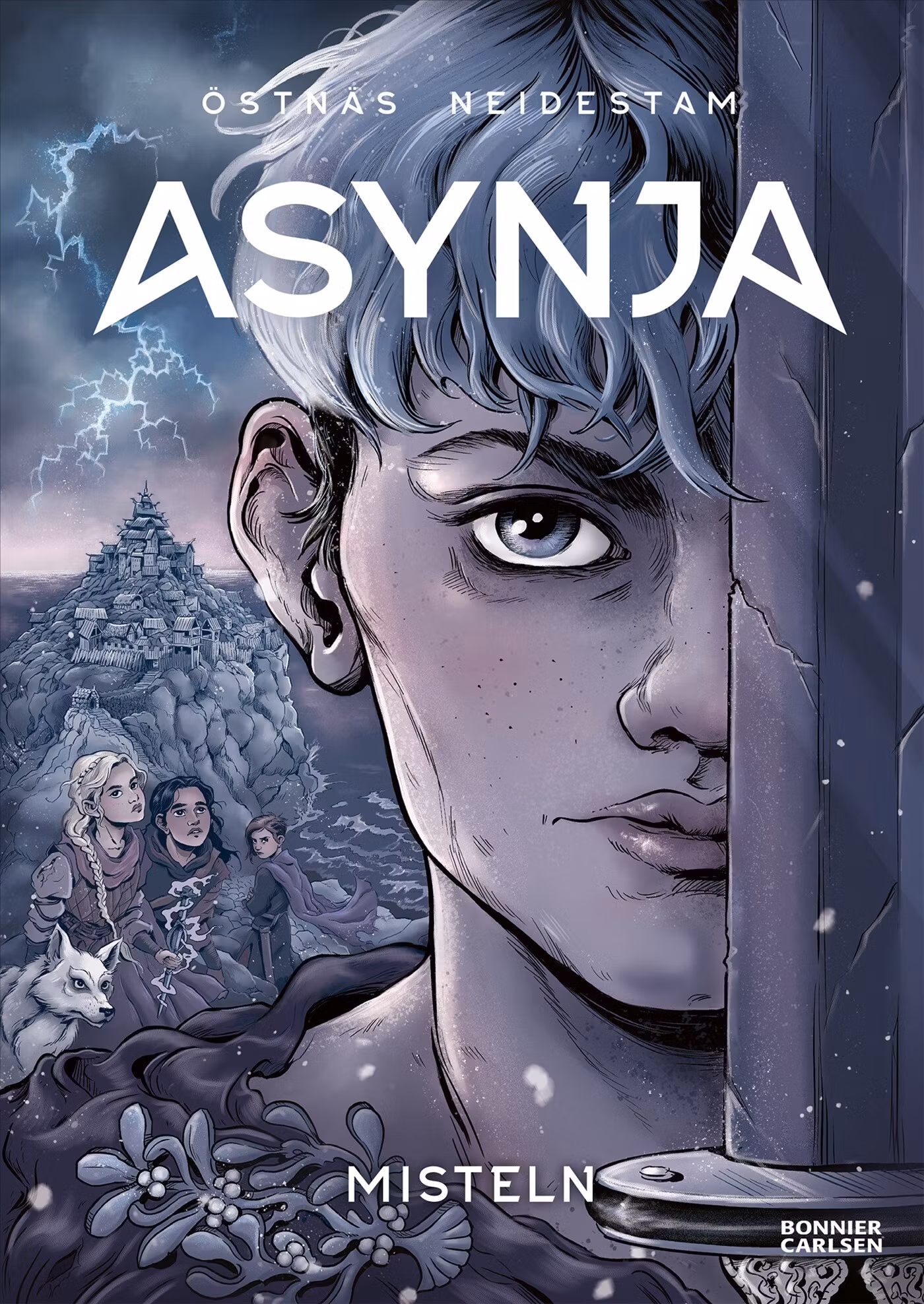 Tiden är inne för den sista striden. ”Misteln” är den femte och sista delen i Elisabeth Östnäs och Lina Neidestams hyllade Asynja-serie, en episk och rikt illustrerad berättelse om hämnd och vänskap bland Birkas yngsta krigare.Världen balanserar på katastrofens rand men människorna vill inte se och inte förstå. Hoppet står till Disa och hennes vänner. Vulkanjätten hotar att ödelägga allt, och tiden rinner iväg. En syster och en bror står på varsin sida. Den sista striden närmar sig, en kamp som gör det svårt att skilja vän från fiende. Elisabeth Östnäs är författaren till den hyllade ungdomstrilogin ”Sagan om Turid” som belönades med Slangbellan för bästa ungdomsroman. Prisbelönta tecknaren Lina Neidestam bjuder läsaren på både suggestivt och effektivt bildberättande med mycket action och svärta. Tillsammans har de skapat ett rått och magiskt vikingaepos i skuggan av en stundande klimatkatastrof.