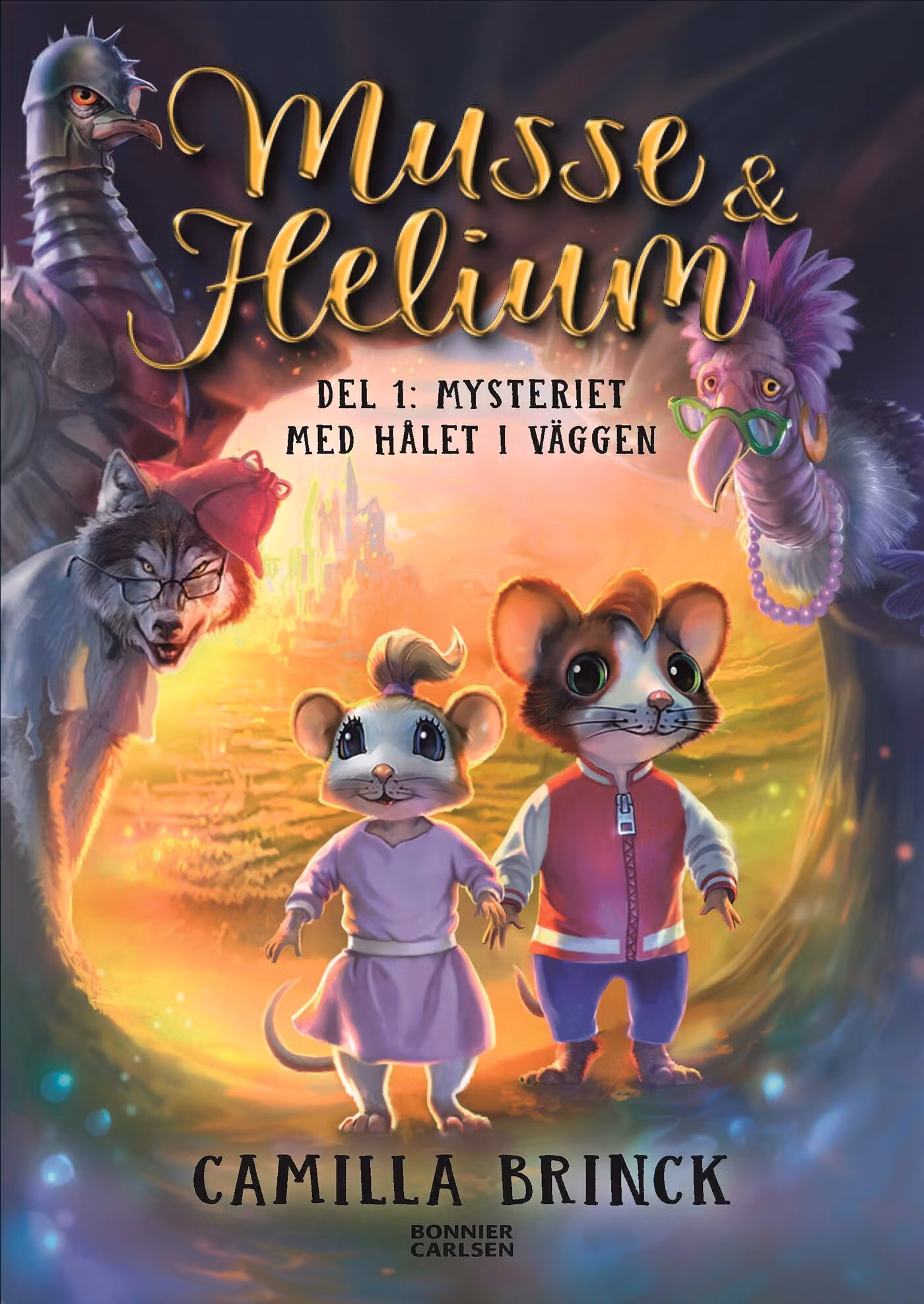 Musse och Helium är två små möss som bor hemma hos Camilla. Hur de kom dit är det ingen som vet, men konstigt nog kan mössen prata och Camilla förstår dem. En dag hittar mössen ett hål i väggen som leder till en annan värld – Djurriket. Det visar sig att Musse och Helium är prins och prinsessa i Djurriket, men har skickats därifrån eftersom onda Duvjägare vill ta dem till fånga för att på så sätt komma över rikets största skatt, Guldosten.Musse och Heliums föräldrar, kungen och drottningen, är mystiskt försvunna, men det finns andra varelser som skyddar och hjälper dem. Varulven Ta-Ta, Tant Gamelina och grislejonet Charlie är bara några av alla mössens fantastiska vänner i Djurriket. Nu måste Musse och Helium finna Guldosten innan Duvjägarna fångar dem …"Musse & Helium. Mysteriet med hålet i väggen" är den första delen i den spännande serien om Musse & Helium. Läs också: Jakten på guldosten, Äventyret i Lindrizia, I Duvjägarnas klor, Den sista kampen, Den hemlighetsfulla världen, En oväntad vändning, Uppdrag på djupt vatten, Den låsta portalen och Universums fyra element.
