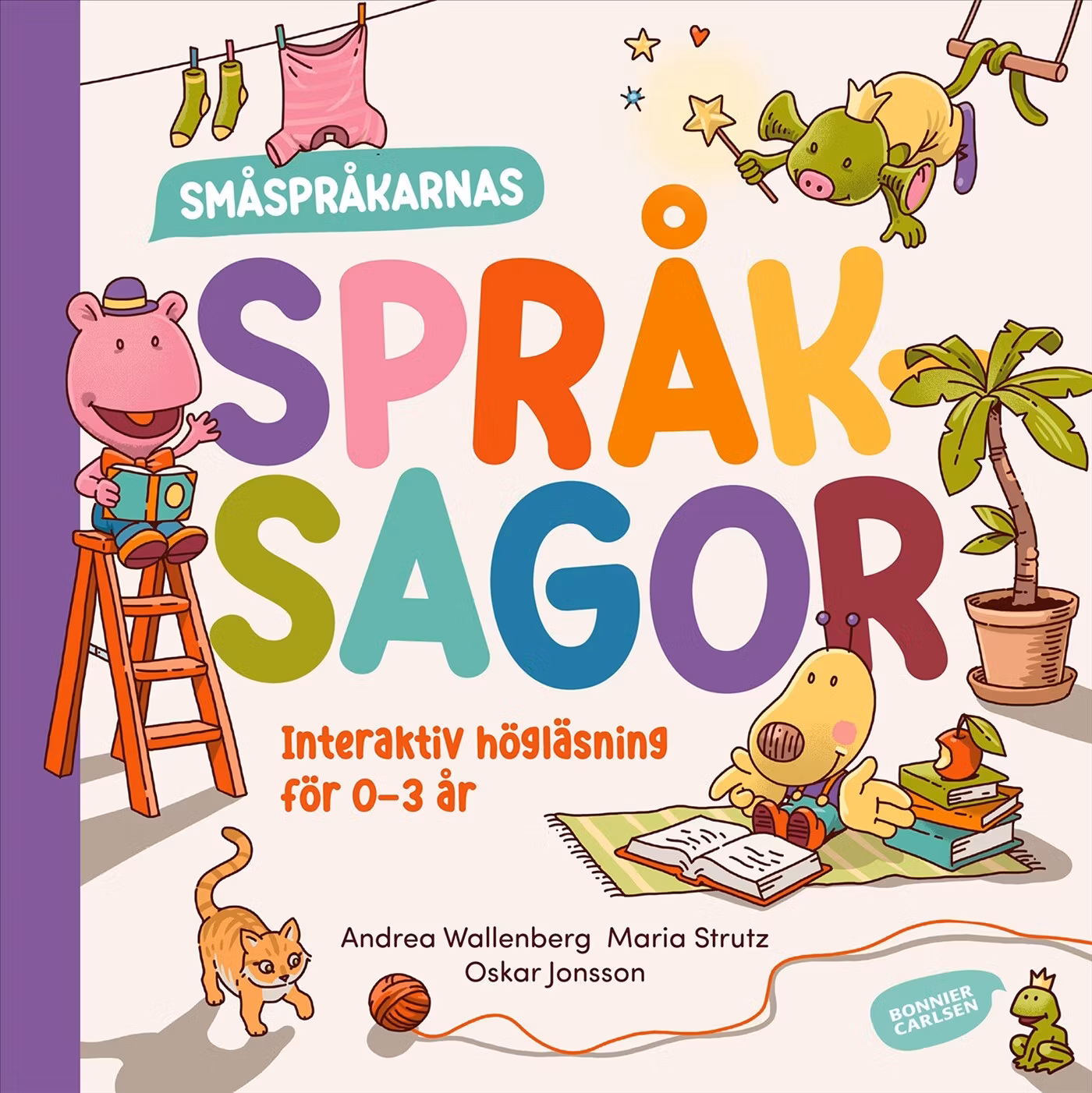 Läs, lek och hitta berättarglädjen tillsammans med Haja, Hoa och Mim! "Småspråkarnas språksagor", skriven av logopederna Andrea Wallenberg och Maria Strutz och illustrerad av Oskar Jonsson, innehåller sex interaktiva sagor som på ett lekfullt sätt främjar språkutvecklingen hos de allra yngsta. Följ med Småspråkarna till bondgården, sortera leksakerna och utforska det viktiga ordet ”nej”. Alla sagor är skrivna så att det ska gå att interagera med dem på något vis. Lek, gissa, välj själva, fyll i och fantisera. Hitta små stunder i vardagen där ni upptäcker hur roligt det kan vara att läsa och berätta ihop. Boken stöttar det lilla barnets språk- och berättarglädje – allt medan ni har kul tillsammans!Andrea Wallenberg och Maria Strutz är logopederna som reser land och rike runt och inspirerar såväl föräldrar, BVC-personal och förskolepedagoger till ett mer språkutvecklande förhållningssätt. Deras första bok om Hoa, Haja och Mim, ”Småspråkarna: Språkutvecklande lekar, sånger och ramsor för barn 0-3 år”, har blivit en succé och älskad favorit både bland barn och föräldrar men också i förskolan. Den här boken fokuserar på två av de allra viktigaste språkkompetenserna – att kunna lyssna till, och själv baka ihop, en berättelse.