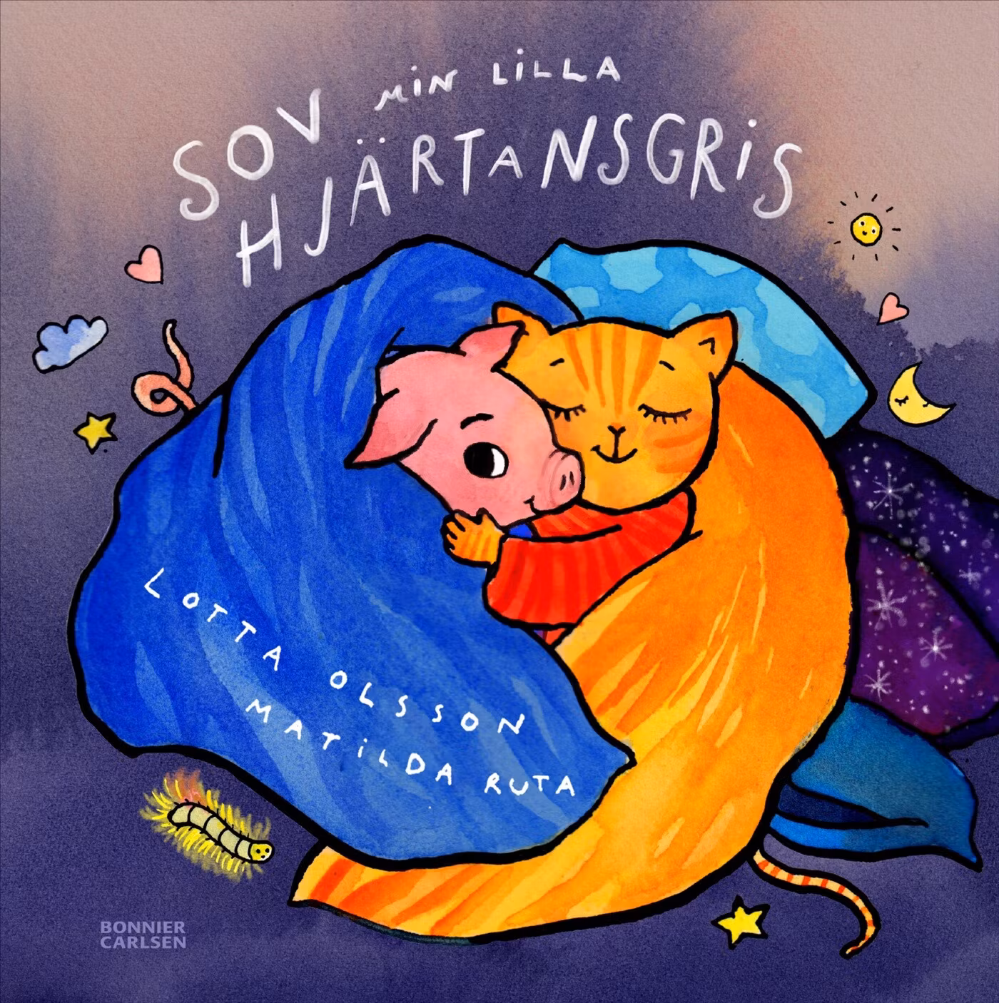 Dagen är slut och det har blivit dags att bädda ner sig bland alla gosedjur … En varm och omfamnande godnattbok för både barn och vuxna av prisade poeten Lotta Olsson och bilderbokskonstnären Matilda Ruta. Underbar godnattpoesi på mjukaste rim med ömsinta bilder som vaggar till ro och tar oss med till sömnens trygga och äventyrliga värld. ”Sov min lilla hjärtansgris, sov nu hela natten. Sov nu sött på grisars vis, sov nu kelekatten.” LOTTA OLSSON är prisbelönt poet och författare som skriver för såväl barn som vuxna. För sina eleganta och engagerade texter har hon belönats med flera priser. Nu senast, 2025, Expressens Heffaklump och Svenska Akademiens pris för barn- och ungdomslitteratur. Den första strofen i ”Sov min lilla hjärtansgris” skrevs delvis tillsammans med Ulf Nilsson. MATILDA RUTA är illustratör, serietecknare och bilderbokskonstnär. Hon har nominerats till både Augustpriset och Elsa Beskow-plaketten. 2023 tilldelades hon Lennart Hellsing-stipendiet. I hennes bilder förstärker ofta färgerna dramatiken på ett mästerligt sätt.