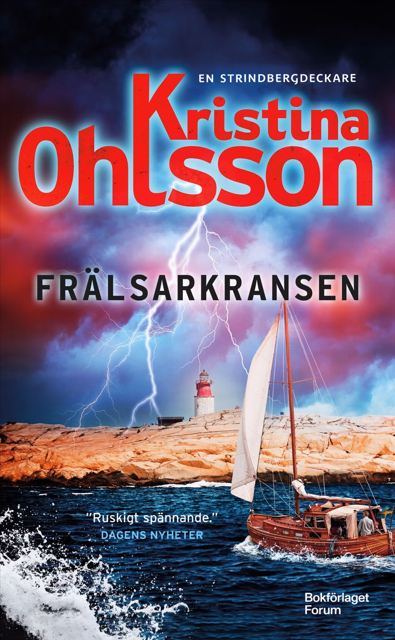 "... ruskigt spännande..."/Lotta Olsson, Dagens Nyheter"Underhållning i toppklass!"/Anders Kapp, Kapprakt”Frälsarkransen” är den fjärde delen i Kristina Ohlssons hyllade Strindbergserie. Nu drar det ihop sig till kräftpremiär på Hovenäset, och till sist har sommarvärmen kommit. Augusts stora dröm om att bli förälder har förverkligats, och han och Maria njuter av sin lilla familj på Kärleksvägen. Men så dyker en skugga ur Augusts förflutna oväntat upp. Någon i hans släkt verkar ha burit på en tung hemlighet.Samtidigt skakas idyllen än en gång om när ett äldre par hittas förgiftade. De har bott på näset i femtio år och är väldigt omtyckta. Vem kan vilja dem så illa? Utredningen hamnar på Marias bord, men det är något som skaver i polisgruppen. Vad är det kollegan Ray-Ray döljer? Fallet visar sig ha en mörkare baksida än någon hade kunnat ana …