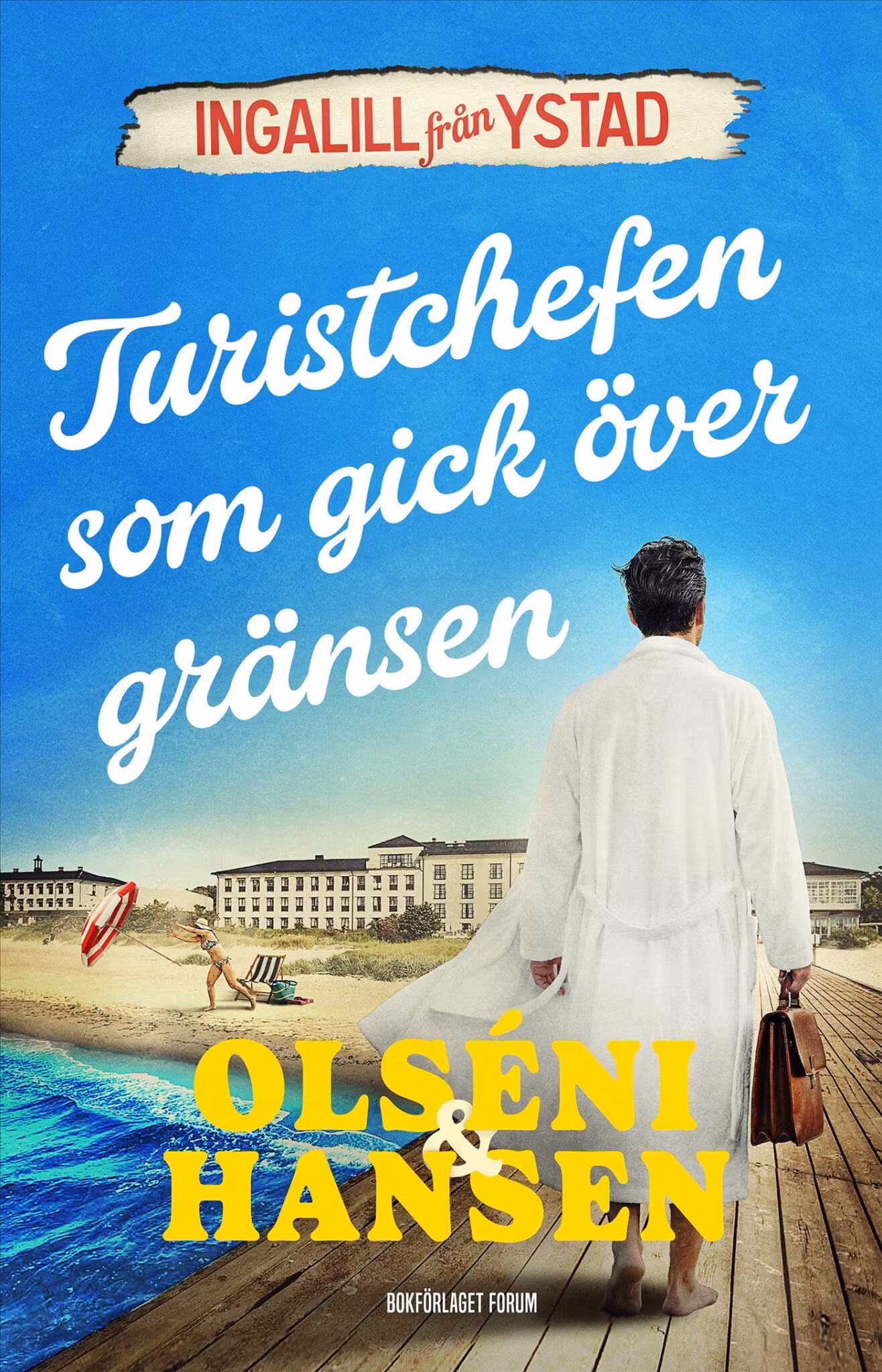 Ystads kommundirektör Berit Hult och turistchefen Fabian Falk bjuder in till en påkostad konferens på Ystad Saltsjöbad med temat Tillsammans för framtidens Österlen. När Fabian lanserar sin storslagna plan att flytta Österlens gränser, spricker leendena snabbare än bubblorna i konferensens välkomstchampagne. Dagen därpå hittas han död på sitt hotellrum. Journalisten Ingalill Johannesson ger sig in i jakten på sanningen med sitt anteckningsblock i ena handen och en biskvi i den andra. Vid sin sida har hon nollåttan, den unge kollegan Carl-Gustaf Ramel, alltid ivrig att vara till lags. Medan polisen famlar i blindo söker Ingalill svaret på vem som är beredd att mörda för att till varje pris behålla Österlens gränser intakta. Christina Olséni och Micke Hansen har haft stora framgångar med sina humoristiska deckare i serierna "Mord i Falsterbo" och "Ester Karlson med K". Turistchefen som gick över gränsen inleder en ny serie med den karismatiska journalisten Ingalill Johannesson i centrum.