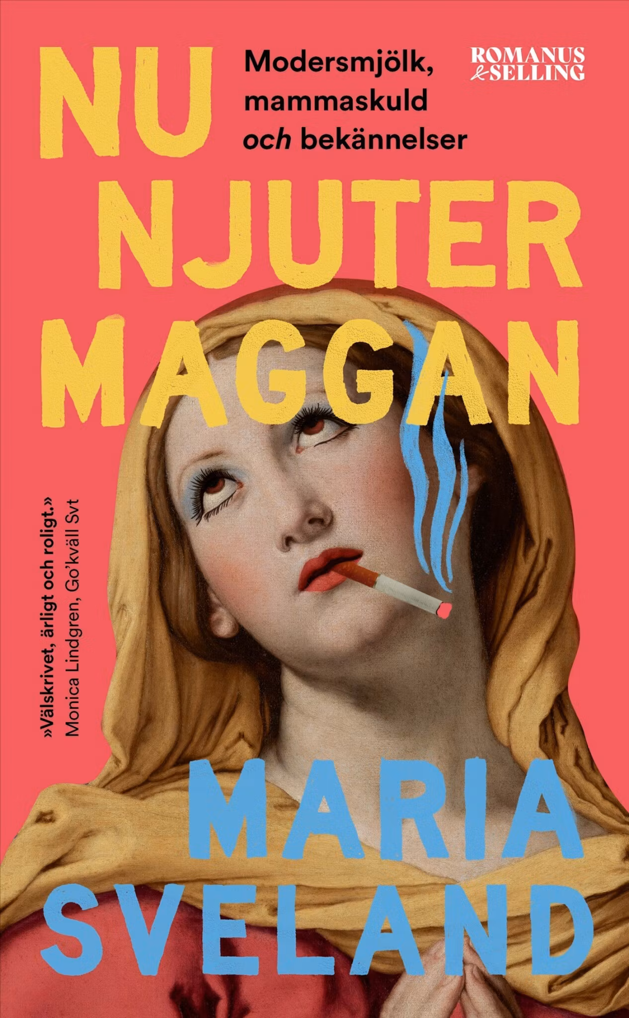 ”Nu njuter Maggan!", säger mamma och höjer glaset med billigt rödvin i en luftskål. I andra handen ryker en cigg som hon då och då tar ett njutningsfullt bloss på. Likt de flesta andra mammor här i världen har hon tagit det största ansvaret för hem och barn. Varit den som alltid funnits där med sina rödfnasiga händer och sträva omsorg. Något jag och mina syskon tagit för givet."Trots allt mammor gör tycks det ändå inte räcka till. Varken för dem själva eller för omgivningen. Mammor har högre krav på sig än pappor. Och som mamma dras många med en känsla av otillräcklighet eftersom det tycks ligga i moderskapets dna att aldrig få känna sig nöjd.Moderskapet har alltid varit utsatt för samtidens pådyvlade normer. Vad som ansetts rätt sätt att vara mamma på har varierat över tid. En sorts kulturell gaslighting som gjort många förvirrade och fyllda av dåligt mammasjälvförtroende. Det vill Maria Sveland göra upp med i sin bok. Samtidigt är "Nu njuter Maggan" en hyllning till alla obesjungna hjältinnor, Mamma Maggan och alla andra mammor.