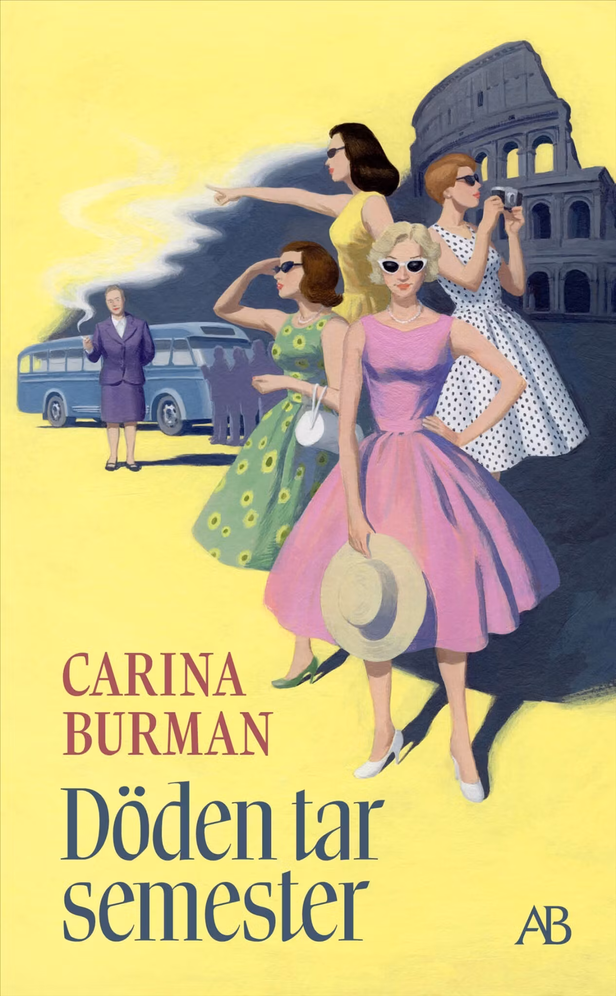April 1956: Deckarrecensenten Florence Granat segnar ner på tidningsredaktionen och beordras vila i Södern, långt från stressen i gamla Klara. En bussresa till Rom tycks som den perfekta återhämtningen, men knappt har de nått kontinenten förrän Florrie får onda aningar, som bekräftas av ett mystiskt dödsfall. Medan bussen rullar vidare avslöjar Florrie den ena efter den andra av medpassagerarnas hemligheter, och vid resans mål finner hon lösningen – och den eviga staden. Carina Burman har skrivit åtskilligt om Rom och utgav 2023 "Drottningar och pretendenter. Om guldålderns deckarförfattarinnor". "Döden tar semester" är en femtiotalsdeckare i Maria Langs och Agatha Christies efterföljd, för nostalgiker, Italienälskare och historieintresserade.