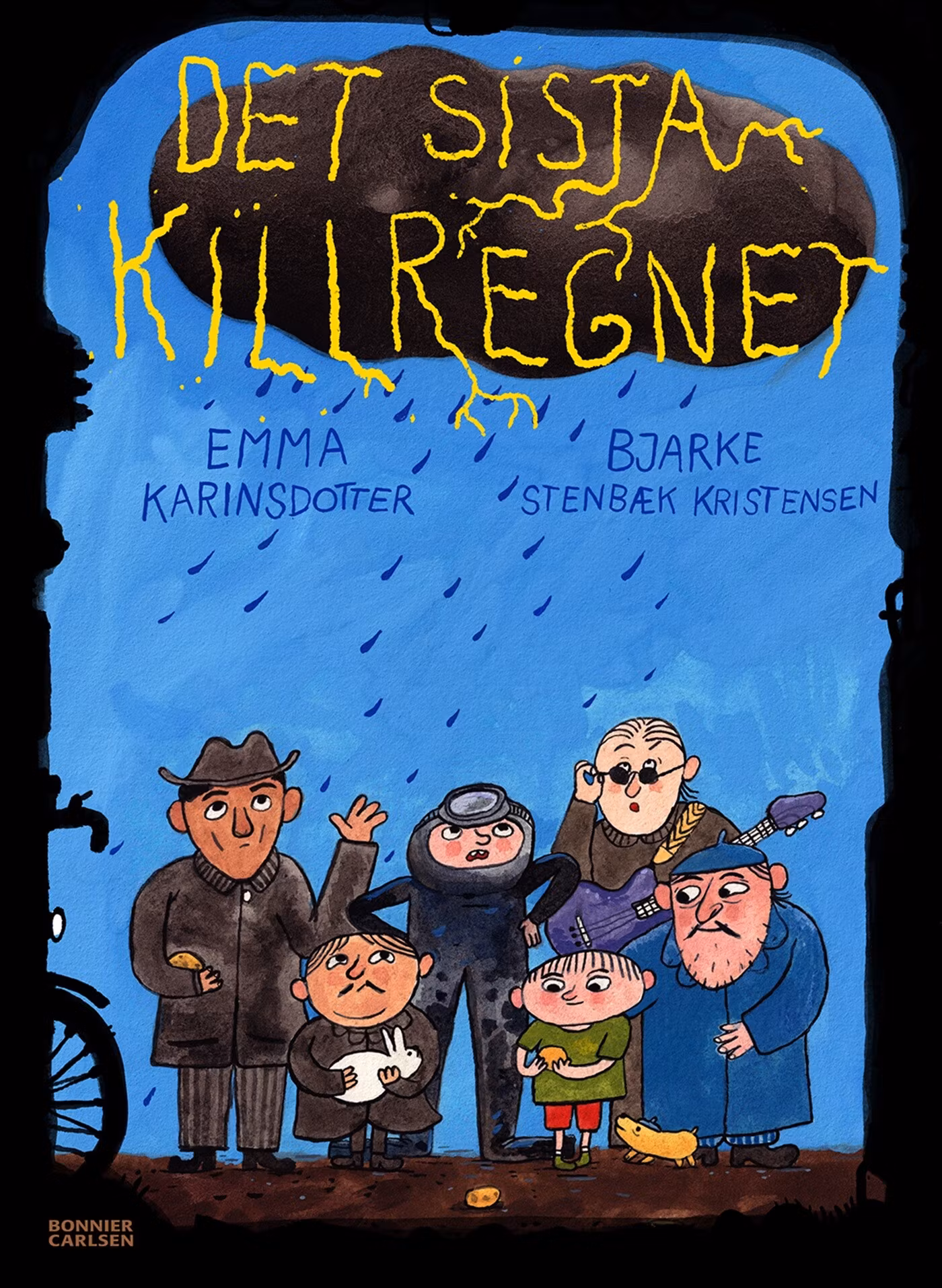 Det är Robertos största dag i livet, för idag fyller han år och blir stor. Äntligen ska han få sin alldeles egna potatis – och äntligen kommer han alltid att vara glad! För så är det när man blir vuxen. Gitarrkillen och snickargubben gråter ju aldrig, och Robertos farfar har heller aldrig fällt en tår. Men om man ändå blir så ledsen att det stormar och rinner över inuti en, vad gör man då?"Det sista killregnet" är en underfundig bilderbok om att våga visa vad man känner. Med humor och blick för det absurda (och en och annan moralpotatis) gestaltar Emma Karinsdotter och Bjarke Stenbæk Kristensen gråtens förlösande kraft.
