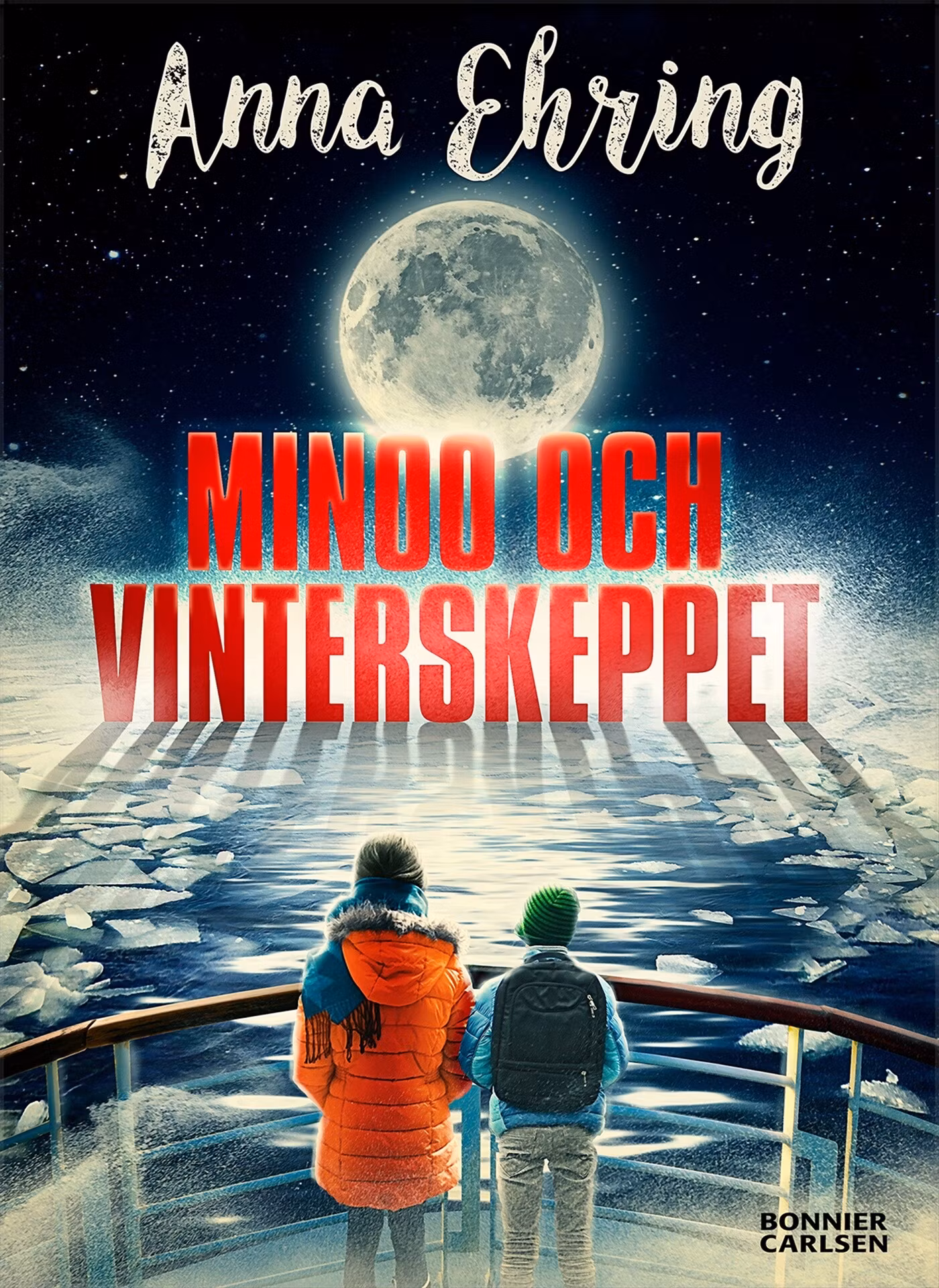 En dag ligger brevet från Migrationsverket på hallmattan. Ett vitt kuvert som Minoo och hennes familj har väntat på så länge hon kan minnas. Där i finns deras framtid. Där i har någon bestämt om de ska få stanna i Sverige eller inte. I Minoo och Vinterskeppet berättar mellanstadiefavoriten Anna Ehring om att hitta den man vill vara och att hitta sitt hemma.När Minoo en decembereftermiddag kommer hem från skolan med lillbrorsan Mirza i släptåg och kikar i brevinkastet, alltid kika först, sen låsa upp!, ser hon brevet från Migrationsverket, tar sin lillebror i handen och flyr.Enda sättet hon kommer på att få med sig sin bror bort från trapphuset är att springa till hamnområdet där Mirza älskar att vara och där han tror att han har sett tomten.Här tar syskonens liv en vändning och ett ofrivilligt äventyr tar sin början.Plötsligt har Mirza rusat ombord, och innan handelsfartyget lägger ut är också Minoo på däck, på jakt efter sin bror.Det blir en resa långt bort och hem. Och på vägen väntar lögner, sjösjuka, spökande barn och makalösa soluppgångar!Som ingen annan hittar Anna Ehring in i känslorna och skildrar respektfullt och finurligt barnets tankar, känslor och vardagsrelationer.