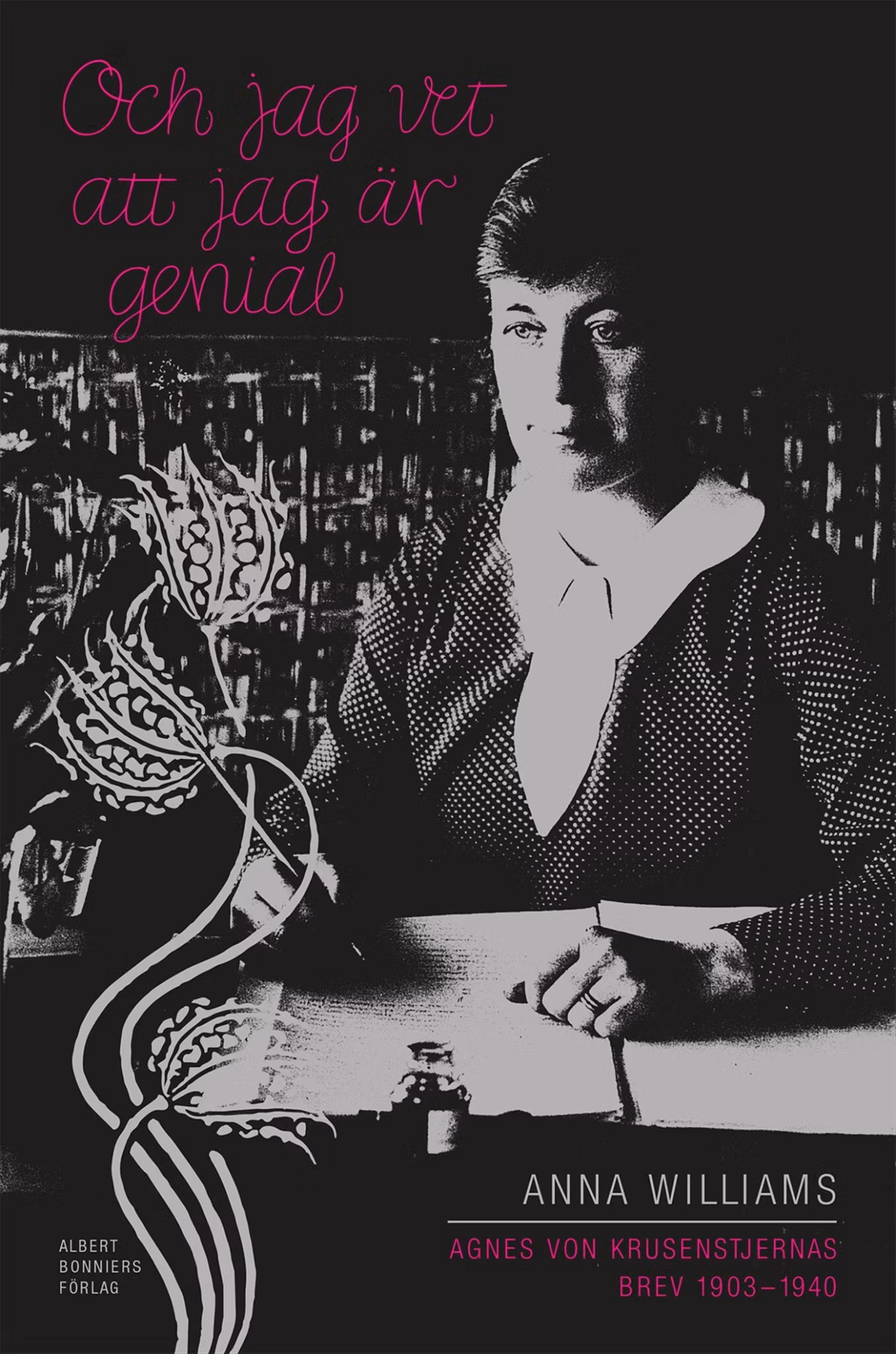 ”Jag är en dålig brevskriverska!” utbrister Agnes von Krusenstjerna i ett brev till en väninna 1935. Men hennes brev säger något annat. De berättar om ett dramatiskt skrivarliv under en omvälvande tid. Agnes von Krusenstjerna (1894–1940) var på många sätt motsatsernas författare. Fylld av skrivglädje samtidigt som hon ibland drabbades av depressioner så svåra att hon måste vårdas på mentalsjukhus. Noggrann med litterär kvalitet men angelägen om att nå ut brett. Hon orsakade succé och skandal med sina romanserier om Tony, fröknarna von Pahlen och Fattigadel. Hon vågade skriva öppet om sexualiteten, kärleken och svårigheten att leva tillsammans. I Och jag vet att jag är genial. Agnes von Krusenstjernas brev 1903–1940 har litteraturforskaren Anna Williams samlat ett par hundra brev från större delen av Krusenstjernas liv. Breven ger en inblick i hennes vardagsliv, men också en bild av hennes självförståelse och författaridentitet, särskilt när frågor om konstens frihet ställdes på sin spets. Agnes von Krusenstjerna beslutade sig tidigt för att satsa på författaryrket, och försörjningen var ett bekymmer, vilket korrespondensen med föräldrar, förlag och kolleger vittnar om. I breven till maken David Sprengel blir också hennes sjukdom märkbar.Under hennes aktiva år infördes den allmänna rösträtten i Sverige, ett världskrig ägde rum och ett annat inleddes. Arbetarlitteraturen blomstrade och modernismens författare slog igenom. Tidsandan sätter spår i breven, men framför allt belyser de Agnes von Krusenstjernas egen livshistoria, fylld av litterär dramatik, skaparlust, sorg och sjukdom.