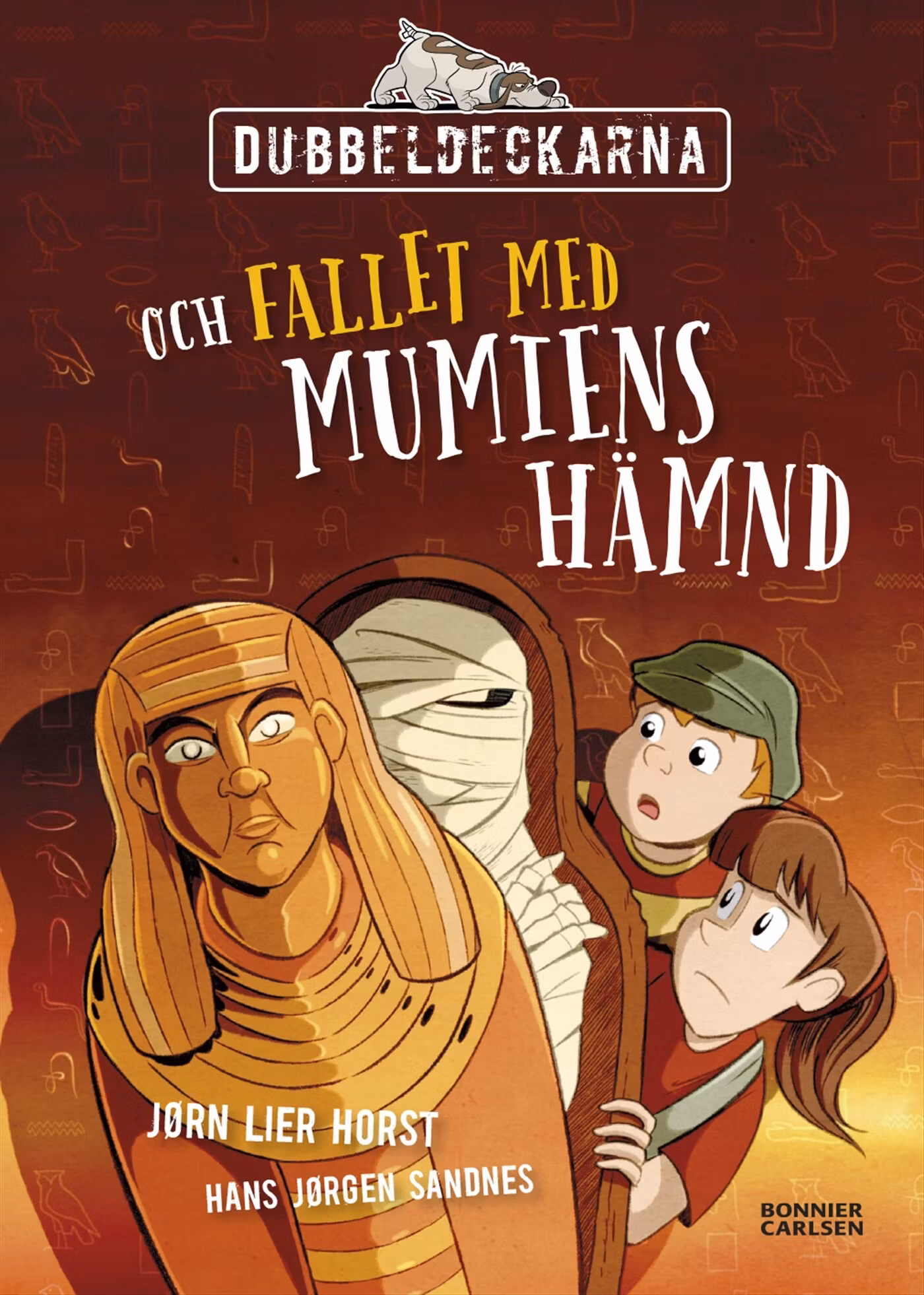 I den idylliska lilla staden händer det mystiska grejer! När museet förbereder en utställning om Egypten börjar oförklarliga olyckor ske. Kan det ha med en viss mumie att göra? Ett solklart fall för Tilde, Viktor och hunden Åtto! Norska deckarstjärnan Jørn Lier Horsts lättlästa böcker om Dubbeldeckarna lovar spänning från första till sista sidan. De färgrika illustrationerna är signerade Hans-Jørgen Sandnes.På museet är man i full färd med att planera en utställning om det gamla Egypten. Huvudattraktionen kommer att vara en flera tusen år gammal mumie. Men under förberedelserna börjar underliga saker och ting hända… Olyckor som inte går att förklara… Kan ryktena stämma? Vilar det en förbannelse över mumien eller vill någon sabotera utställningen? I så fall vem? Dubbeldeckarna Tilde och Viktor och hunden Åtto är på plats och som vanligt när de ställs inför ett nytt fall gör det allt för att komma till botten med mysteriet.