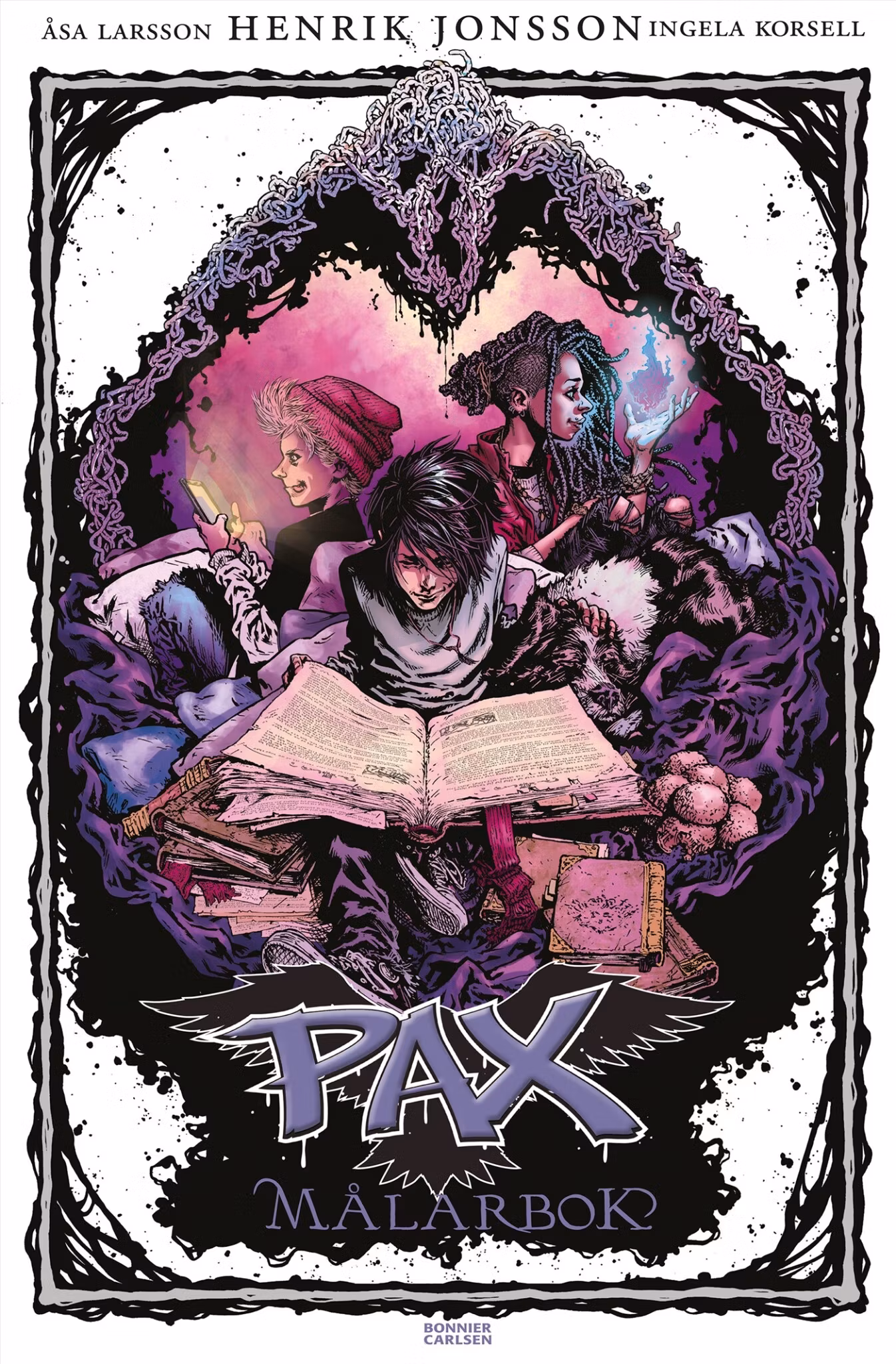 Ännu mera action, drama och magi i dina färger! Nu kan du fortsätta att färglägga den magiska bildvärlden i PAX-böckerna och uppleva korpbröderna Alriks och Viggos äventyr. Här finns skisser, illustrationer och aldrig tidigare publicerade bilder från den andra delen av serien, från del 6 till del 10 - den avslutande delen. Trion bakom den kritikerhyllade PAX-serien består av spänningsförfattaren Åsa Larsson, författaren Ingela Korsell och illustratören Henrik Jonsson. Tiden pulsar. Mörkret vandrar in. I PAX. Mera Målarbok kan du bläddra bland scener ur Näcken, Pestan, Vitormen, Maran och Draugen och läsa textutdrag och citat eller varför inte utforska det magiska biblioteket? Färglägg sjörået, svarthäxan, vitormen och alla de andra övernaturliga varelserna, eller ge dig i kast med det myllrande persongalleriet, vilken är din favorit? Alrik som älskar djur, lillebrorsan Viggo som klättrar på allt han ser, den coola häxan Iris eller bibliotekets väktare; Estrid och Magnar? Ge din fantasi fritt spelrum! PAX; lika beroendeframkallande som Harry Potter, lika blodisande som Hungerspelen.Om PAX. Målarbok (innehåller del 1-5)”Det är inte ofta jag skriver om målarböcker i min krönika. Men nu är det befogat./.../Jonssons penna skapar fantastiska bilder./.../Det här är ett måste för alla Paxvänner helt enkelt.” Blekinge Läns Tidning, Annelie Henrysson
