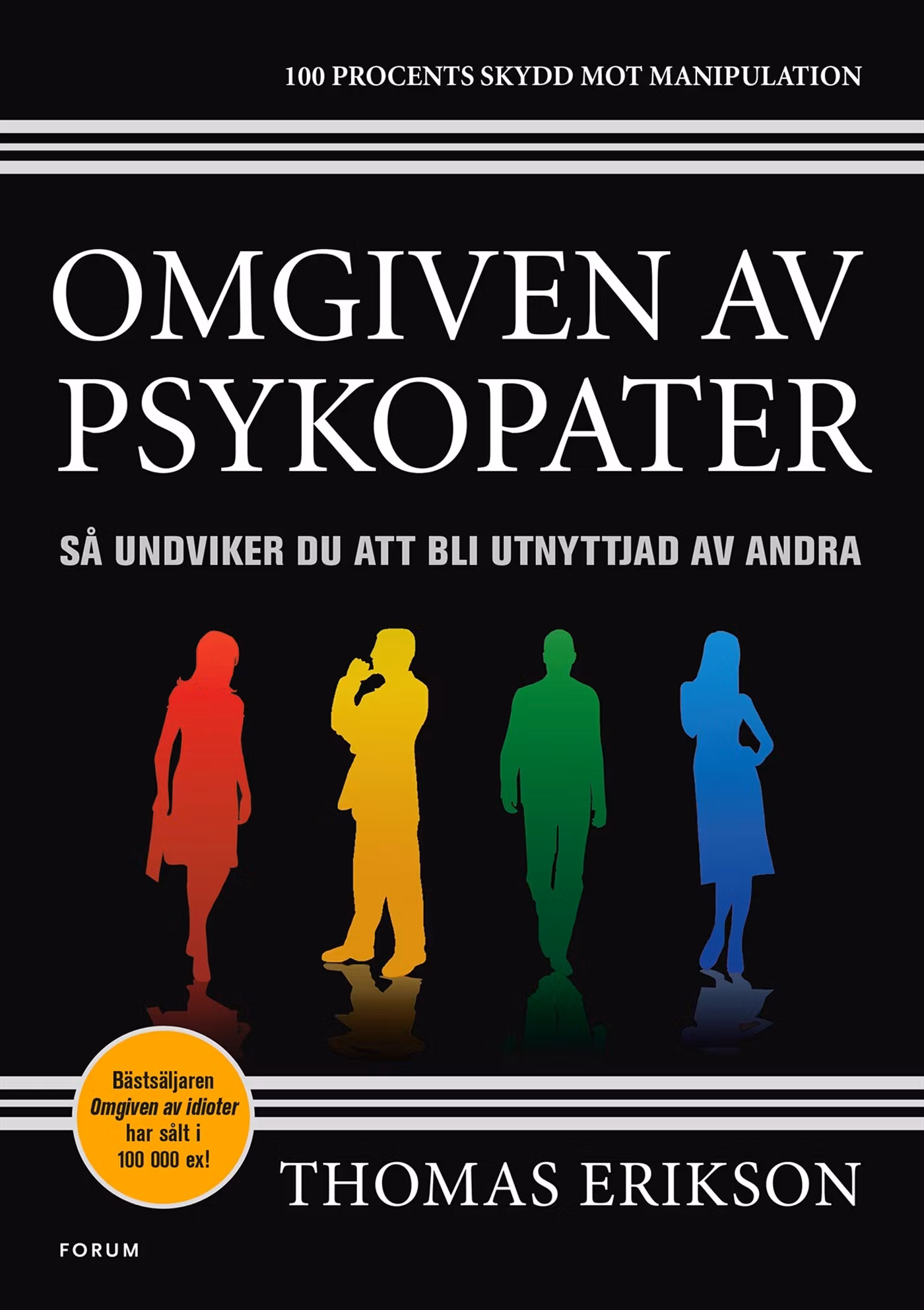 Efter den stora succén Omgiven av idioter kommer nu Thomas Erikson med den efterlängtade uppföljaren Omgiven av psykopater.Du har säkert stött på den här personen: en spännande människa som är otroligt karismatisk, trevlig, charmig och hjälpsam. Som alltid har en komplimang i beredskap. Och som garanterat får dig att må bra. Du tror på det du får höra, även när det låter falskt – eftersom det känns så bra. Men det som verkar för bra för att vara sant är troligen det …På populärvetenskapligt vis och med glimten i ögat avslöjas hur en psykopat använder sig av dina svagheter för att kunna utnyttja dig så mycket det bara går. Du får reda på om din egen personlighetstyp är röd, gul, grön eller blå enligt det psykologiska DISA-systemet. Genom att bli medveten om hur du själv fungerar kan du se igenom och stå emot psykopatens avancerade manipulation. Helt klart är att vissa människor har en personlighet som är exceptionellt manipulativ. De kan övertyga vem som helst om vad som helst. De tycker om att kontrollera andra. Och de drar sig inte för att ljuga och förvränga sanningen för att komma dit de vill.Alla med psykopatiska drag är naturligtvis inte psykopater. Och alla psykopater är inte bindgalna seriemördare. De flesta av dem vandrar faktiskt omkring här mitt ibland oss. Dessvärre är de betydligt fler än vad man tidigare har trott, vilket betyder att du med största sannolikhet redan har träffat på några av dem i grannskapet, på jobbet eller kanske i din familj. Nu är det dags att ta reda på hur de gör för att utnyttja dig – innan det är för sent!