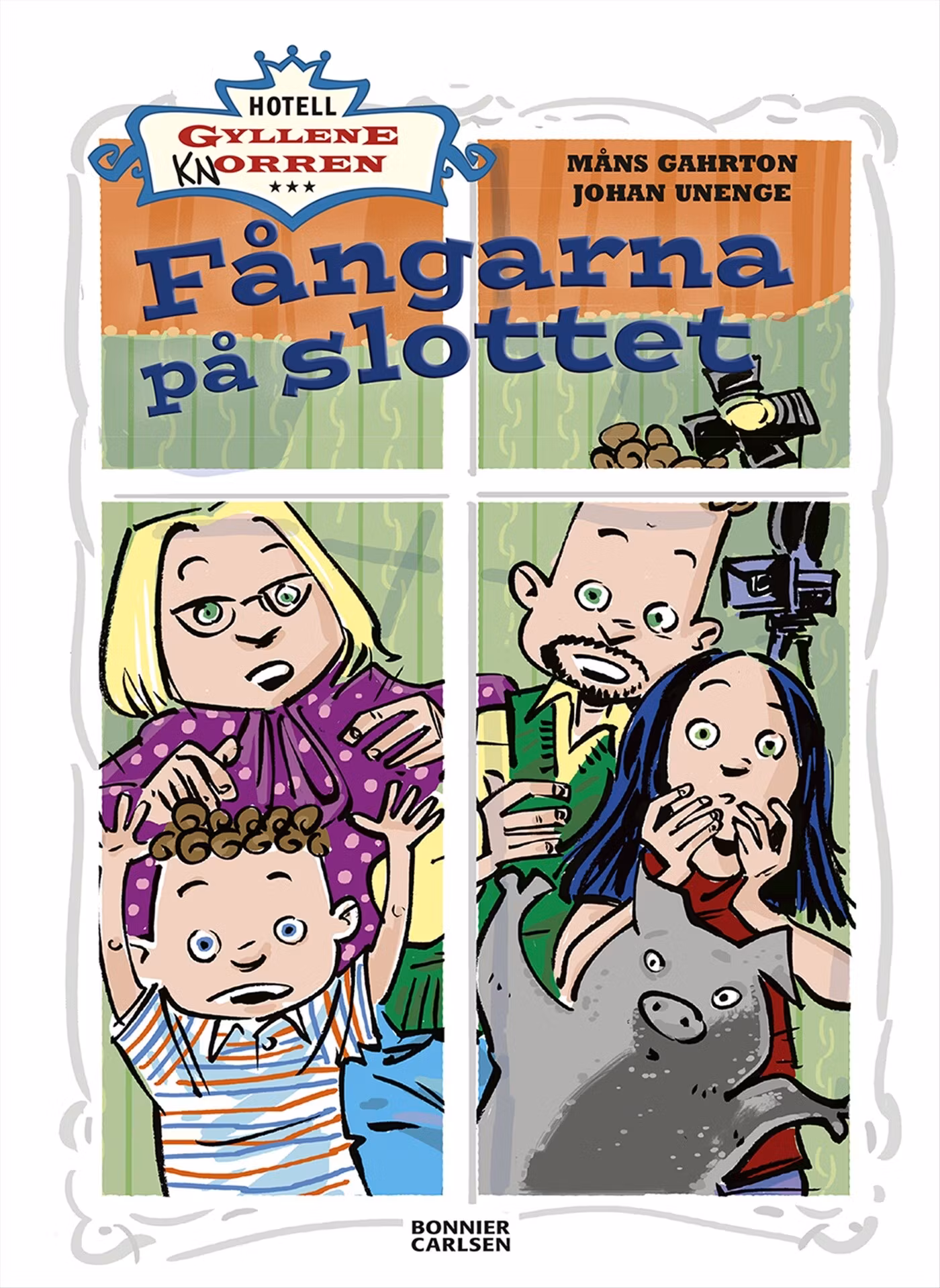Tevekaos och kändisar på Sveriges galnaste hotell! Humorexperterna Måns Gahrton och Johan Unenge presenterar återigen ett skrattframkallande äventyr i sin uppskattade serie om hotell Gyllene knorren. Äntligen verkar lyckan vända för familjen Rantanen som driver hotell på landsbygden. En teveproducent har bokat hela hotellet för att spela in en ny säsong av sitt superpopulära familjeprogram ”Fångarna på slottet”.Klirr i kassan och fullt av gäster i rummen när kändisarna checkar in. Eller fullkomligt kaos? "Fångarna på slottet" är den artonde fristående delen i serien om den charmiga familjen Rantanen och deras knasiga hotell.