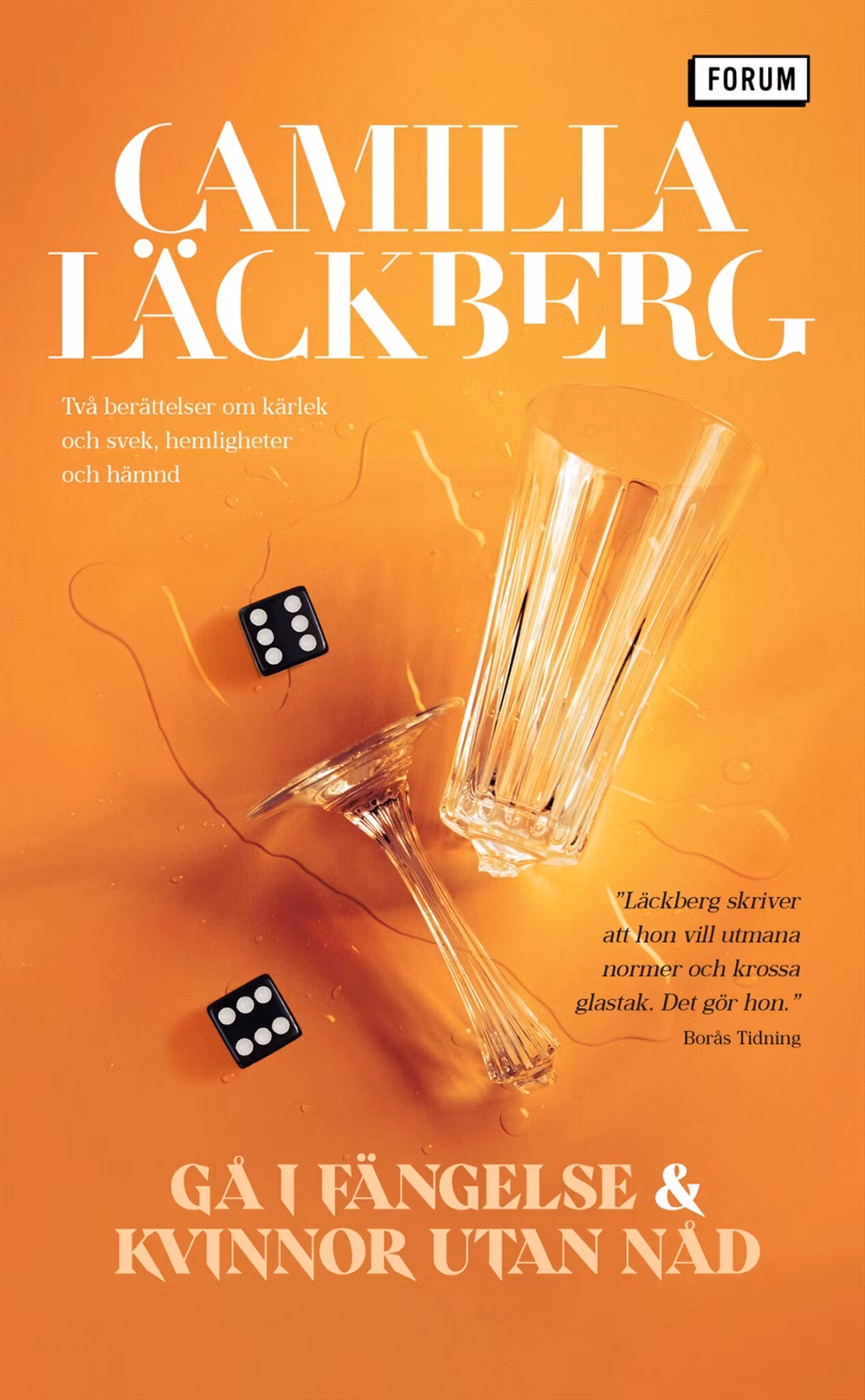 Camilla Läckberg är tillbaka med två fristående berättelser om hemligheter, svek och att ta makten över sitt liv. Fyra ungdomar som känt varandra sedan barnsben firar nyår i en stor, lyxig villa med sjötomt utanför Stockholm. De är bästa vänner, precis som deras föräldrar som har fest i villan intill. De har allt, men bär också på mörka hemligheter de inte delat med någon, inte ens varandra. När ett parti Monopol spårar ur och insatserna höjs, börjar hemligheterna långsamt sippra fram. Och när krutet lagt sig tar en intrikat plan sin form…Ingrid Steen lever det perfekta livet med en framgångsrik make, villa i Bromma och en väluppfostrad dotter. Victoria Brunberg har flytt från Ryssland och lever ett stillsamt liv på landet med sin man. Och Birgitta Nilsson är en omtyckt lågstadielärare med en tystlåten man och två vuxna barn. Men bakom fasaderna är ingenting som det först verkar. Tillsammans, men anonyma för varandra, bestämmer kvinnorna sig för att en gång för alla slå tillbaka.Gå i fängelse och Kvinnor utan nåd är två rafflande berättelser om kärlek, svek och gruvlig hämnd, som inte lämnar någon oberörd.
