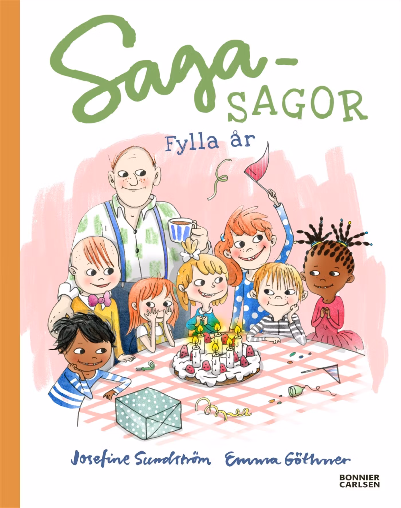Det är Sagas födelsedag. Hon ska ha kalas för kompisarna och morfar ska komma på besök. Det är pirrigt! På morgonen får hon paket och frukost på sängen. Men Saga känner sig varm och lite konstig. Fastän mamma säger att hon kan få provsmaka marängerna direkt från plåten vill hon inte det. Och även om allting är roligt på kalaset orkar hon inte jaga ballongerna tillsammans med vännerna. Sagas kalas blir inte alls som hon tänkt sig – men ganska bra ändå, till slut!Välkommen in i Sagas värld! Josefine Sundströms vardagligt, kloka text och Emma Göthners pigga och inkännande illustrationer öppnar dörren till en trygg vardag att känna igen sig i, skratta åt och bli berörd av. Den här berättelsen har tidigare ingått i kapitelboken Sagasagor: Syskonsjuka, kämpaglöd och en envis framtandNu innehåller berättelsen fler illustrationer. Läs också:Sagasagor: Studsmatta, simskola och en borttappad Tigertass, 2016 (tilldelades priset: Din bok - Vårt val, Svenska Bokhandelsmedhjälpareföreningens årliga pris för bästa barnbok år 2016). Sagasagor: Syskonsjuka, kämpaglöd och en envis framtand, 2017 Sagasagor: Fiffiga kroppen och finurliga knoppen (i samarbete med Kronprinsessparets stiftelse Generation Pep, 2017) Sagasagor: Ballonglängtan, kurragömma och två tomtar i diket, 2019 Se även tv-filmerna Sagasagor på Viaplay (Nominerade till Kristallen både 2019 och 2020!)