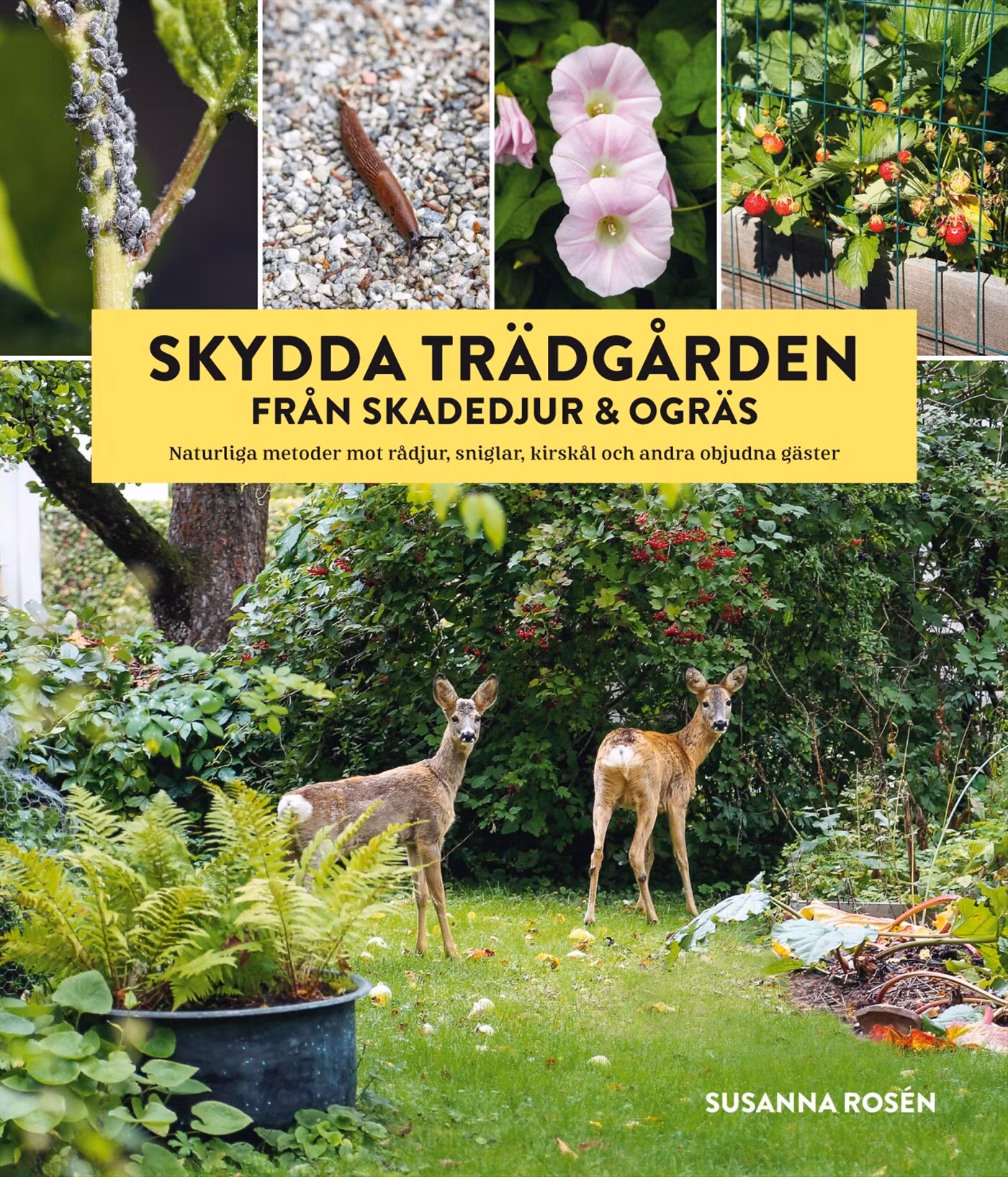 Alla som odlar eller har en trädgård har någon gång fått besök av ovälkomna gäster. Det kan vara ett rådjur som har gett sig på tulpanerna eller trastar som har rensat bärbuskarna. Men även sniglar, bladlöss och andra mindre djur kan göra stor skada bland grönsakerna eller i rabatten. Och ogräs som kirskål, blomsterlupin och parkslide kan ta över en hel trädgård om de inte tas om hand i tid.Boken bygger på miljövänliga metoder, som att bekämpa för hand eller att på olika sätt gynna djurens naturliga fiender. Försök att ligga steget före. Genom att sätta upp barriärer, locka nyttodjur till trädgården och odla växter som djuren inte tycker om kan många angrepp undvikas. Om du jobbar tillsammans med naturen får du mer tid för njutning i din trädgård, och en miljö som är trivsam för de pollinatörer som får dina träd och buskar att bära frukt.Susanna Rosén är trädgårdsjournalist och författare till flera populära böcker om trädgårdsskötsel och naturlig odling.