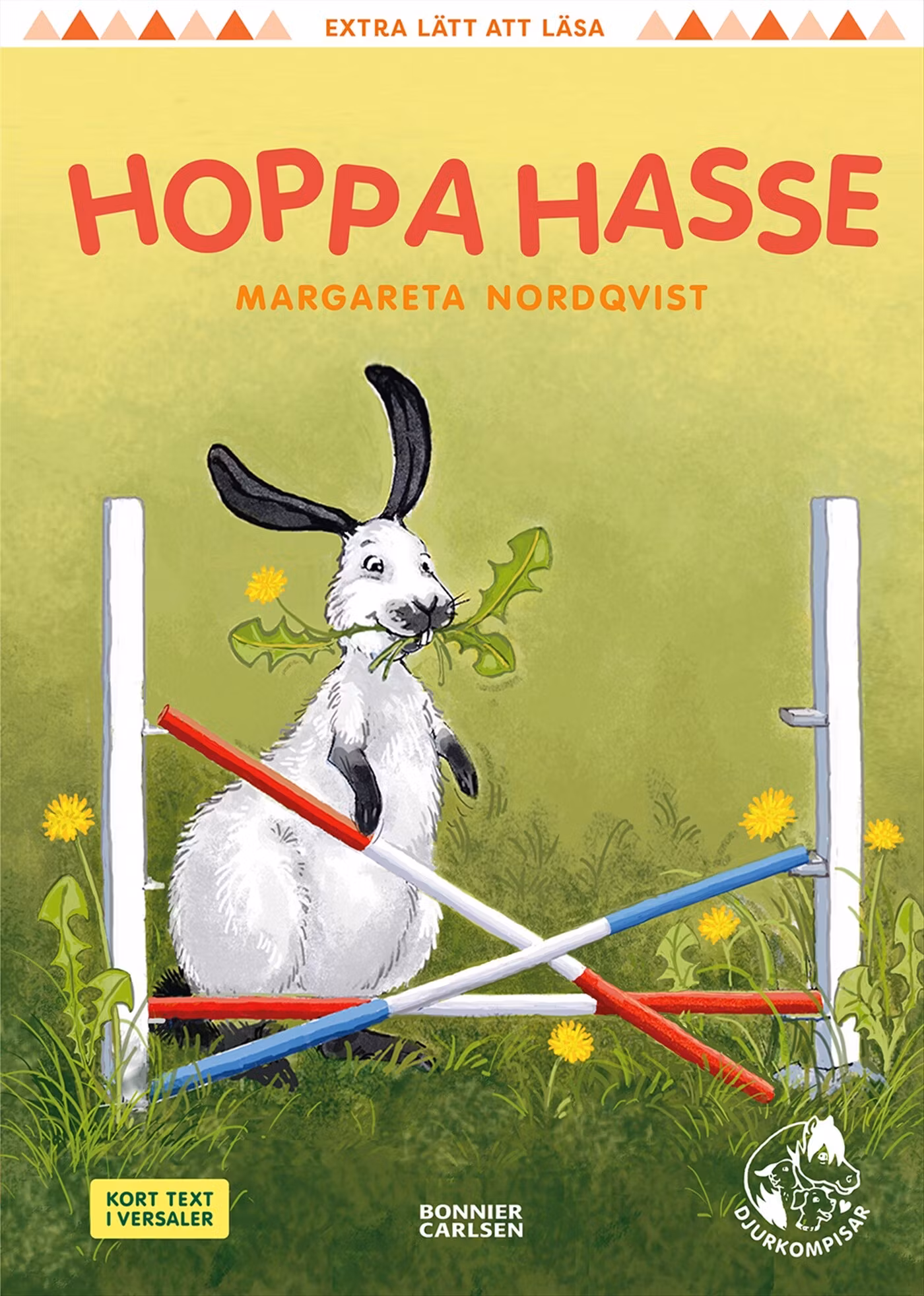 Lasse och hans syster Lisa bygger en hinderbana åt sina kaniner, Bruno och Hasse. Bruno hoppar, men inte Hasse, och vad nu då, vart tog Hasse vägen?"Hoppa Hasse" är den andra boken i en lättläst serie om husdjur av Margareta Nordqvist, som illustrerat de populära Sigge-böckerna. Serien ”Djurkompisar” ingår i Extra lätt att läsa för de absoluta nybörjarläsarna. Kul och lätt läsning med versaler! I serien får vi följa barnen Maja, Lasse, Pelle och Ella som bor på landet och tar hand om olika djur. I den första boken fick Maja kattungar och i den tredje, som beräknas komma under våren 2010, är det Pelle och hans labrador Poppe som står i centrum av handlingen.I Extra lätt att läsa ingår även serierna ”Sorro och Seppo” och ”Solgatan 1”.
