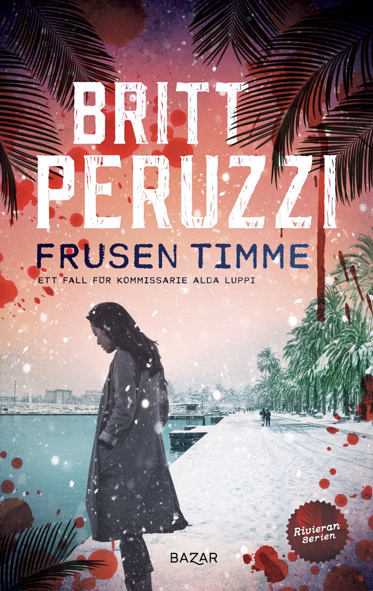 Peruzzi tecknar omsorgsfullt sina karaktärer, och parallellt med själva deckargåtan får vi följa kommissarie Luppis något trassliga privatliv. Miljöerna är målande beskrivna och läsaren känner verkligen doften av Provence och dess mat och viner i denna trivsamma deckare.BTJÄn en gång får kriminalkommissarie Alda Luppi vid Nice-polisen ett svårlöst fall på sitt bord.Det är vinter i Nice och snön faller över Promenade des Anglais. Mitt under polisens årliga bal kommer ett larm. Ett svenskt par i 50-årsåldern har hittats döda i lägenheten de brukar hyra i badorten Beaulieu. Någon har skjutit dem under eller efter vad som ser ut att ha varit en kärleksnatt. För att lösa det komplicerade fallet tvingas Alda ta sig till den karga, svenska ön Ven. Under resan får hon tid att reflektera över sin egen livssituation och de svåra val hon måste göra.Frusen timme är tredje delen i Britt Peruzzis omtyckta Rivieran-serie, där intelligenta mordintriger blandas med härliga skildringar av mat, vin och Medelhavsmiljöer.