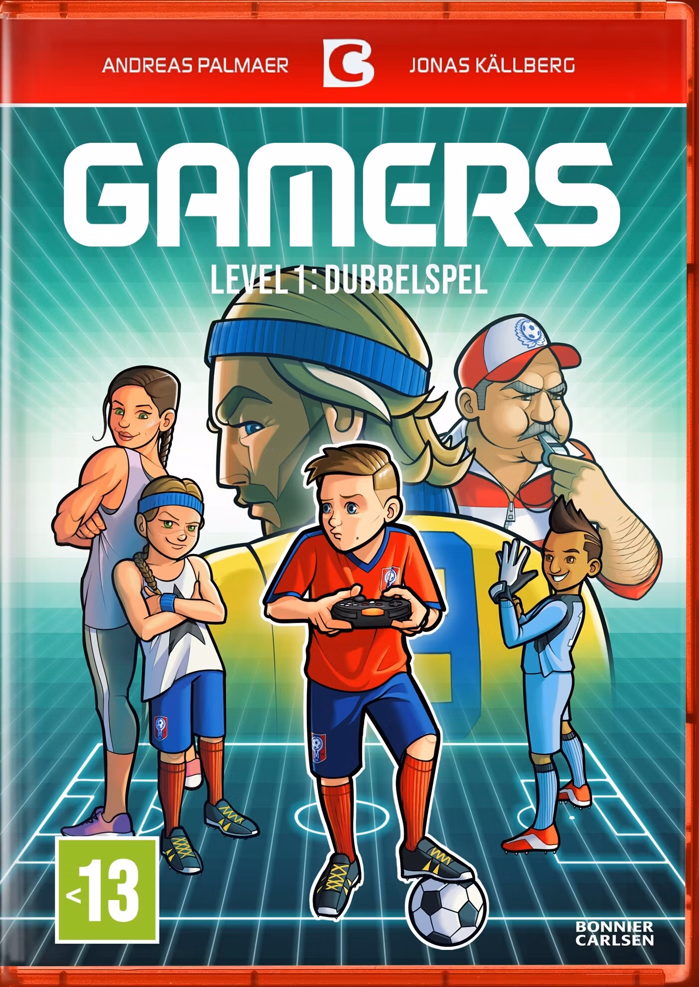 E-sport eller fotboll, vad är viktigast?Det är frågan som hela Lionel Silvers liv kretsar kring i nya serien ”Gamers”!Lionel Silver spelar fotboll flera gånger i veckan. Det finns bara ett problem: Han är bollrädd och skulle helst stanna hemma och spela Golden Goal – världens bästa fotbollsspel. Men Lionel är tyvärr son till Tom Silver, f.d. fotbollsstjärna, och ”Tanja Tortyr”, världens mest övertaggade gympalärare. Tv-spel är det värsta de vet. Så när Lionels fotbollslag har match samtidigt som det är en Golden Goal-turnering i staden, måste han komma på en lösning. Insatserna är skyhöga, för om Lionel blir påkommen kan han glömma att få spela en enda sekund Golden Goal igen … ”Gamers: Dubbelspel” är skriven av Andreas Palmaer (som tidigare skrivit fotbollsserien ”Fans” tillsammans med Arne Norlin) och är en lättläst bok full av humor för 9-12, om kärleken till fotboll och e-sport, men också om vänskap och hur det är att inte känna att man passar in i sin egen familj. Men mest handlar den förstås om spännande matcher, både på fotbollsplanen och i spelvärlden. Detta är något som Jonas Källberg tagit fasta på i sina färgstarka och gaminginspirerade illustrationer.