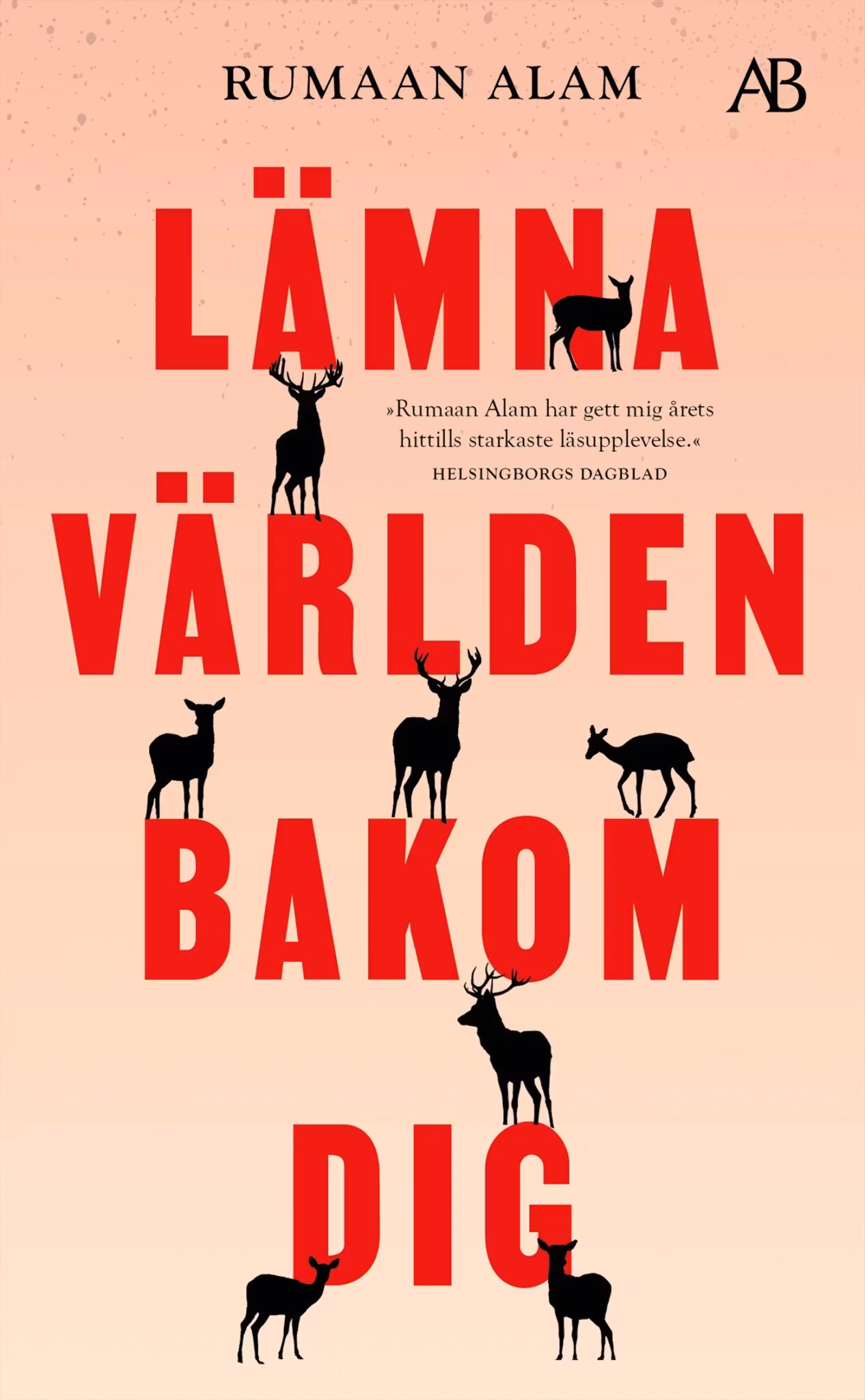 Semester.Ett sommarhus i oväntad radioskugga.Två privilegierade familjer som plötsligt tvingas dela på utrymmet. En katastrof. Rumaan Alams "Lämna världen bakom dig" nominerades till National Book Award, klättrade på försäljningslistorna och hyllades av en enig kritikerkår när den kom ut i USA hösten 2020. Romanen har filmatiserats för Netflix, med Julia Roberts, Ethan Hawke, Mahershala Ali och Myha'la i rollerna.