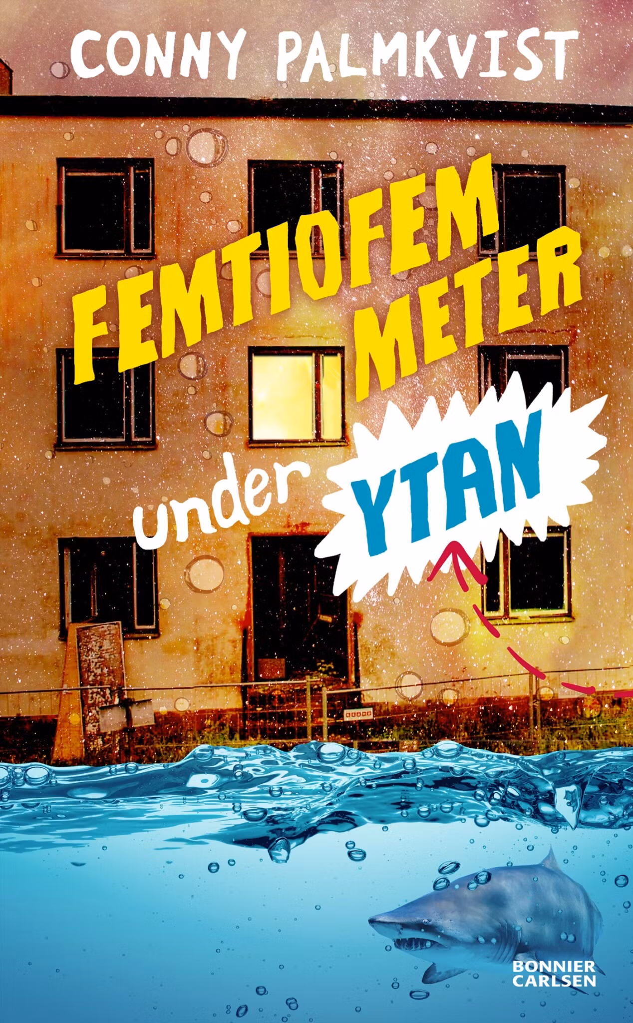 Det är något som inte stämmer med rivningshuset tvärs över gården. En gardin fladdrar till. Den har Bengt-Gustav aldrig sett förut. Han går dit fast han inte får, och upptäcker på andra våningen en dörr som är märkt ”1982”. Det här blir den första av flera tidsresor, där Bengt-Gustav får möjligheten att fixa allt det som gått snett för hans pappa genom åren, allt det pappan skyller sin alkoholism på. Men det blir inte bättre, snarare tvärtom. Bara i vattnet är allt lugnt. I badkaret sänker sig Bengt-Gustav under ytan och tänker på Guillaume Néry som länge hade världsrekordet i fridykning - 113 meter ner i djupet utan vare sig syrgas eller mask. Där ser han sin livbåt underifrån, den som han sitter i ensam. Den som ska rädda honom när pappa spårar ur.Till sist inser Bengt-Gustav att det han måste göra är att låta fler människor komma upp i hans livbåt här och nu. Först då kan både han och pappan hitta en väg framåt.Conny Palmkvist har en osviklig förmåga att som författare närma sig det allra svåraste av ämnen, och göra det på ett sätt som kombinerar magisk realism med ett absolut gehör för hur man gestaltar alla de ibland motstridiga känslor ett barn i kris kan känna. ”Femtiofem meter under ytan” är tredje delen i en tematiskt sammanhållen trilogi som utspelar sig runt Julaftonsgatan. Läs också ”Mina fem regler för livet” och ”Fyra minuter över tolv”.Om "Mina fem regler för livet": "...en gripande och välskriven mellanåldersbok, med humoristiska inslag, som inte väjer för de mörka sidorna i tillvaron. Slutet inger hopp." Dag Hedberg, BTJ-häfte 8, 2021.Om "Fyra minuter över tolv": "Väldigt starkt och berörande om liv, sjukdom och kärleken i en familj" Vi Läser