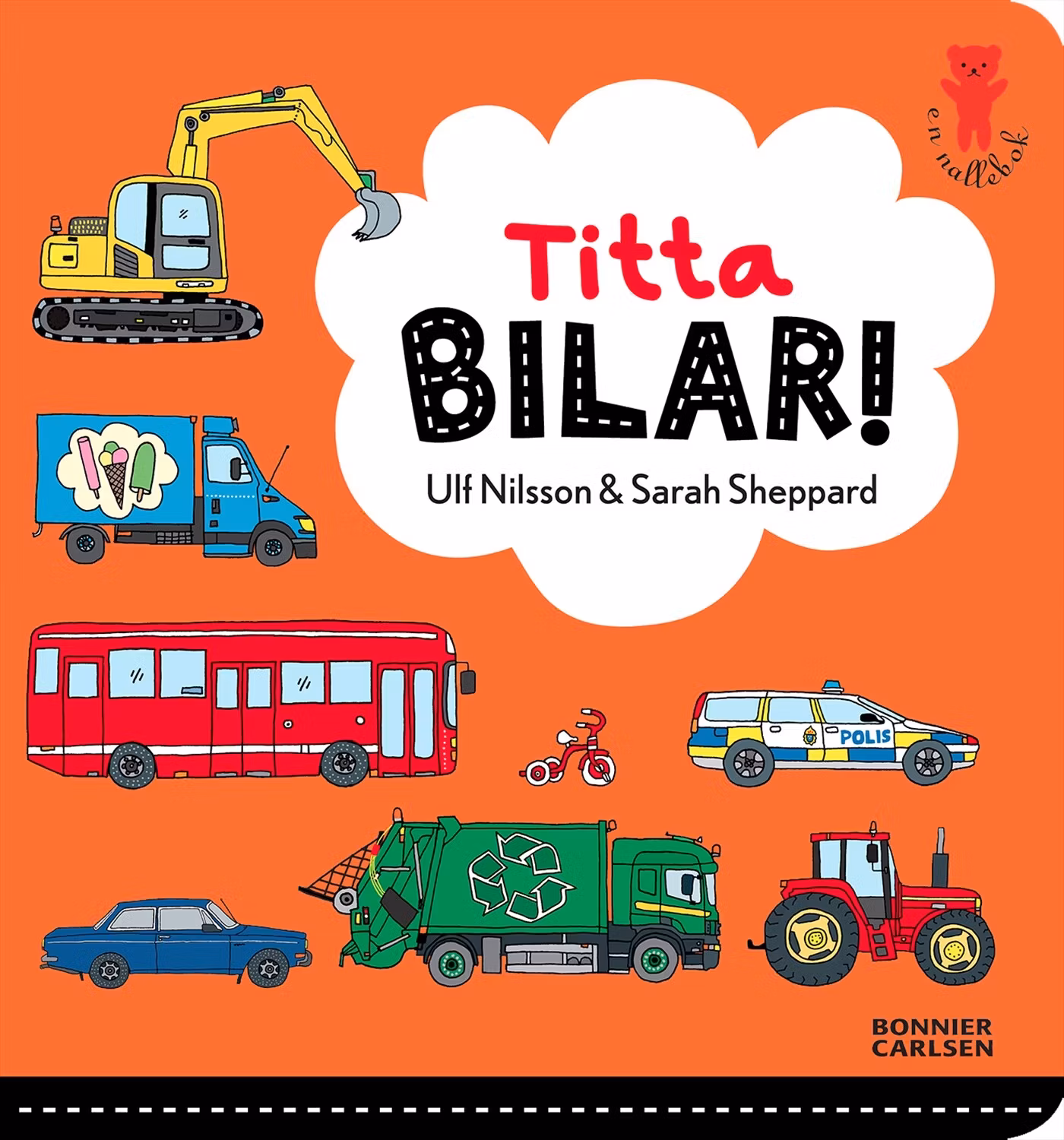 Lilla trehjulingen. Grävmaskinen! Oj, gul! Ambulansen, aj aj! En polisbil, tut tut. Men oj, STORA bussen, ojoj!En stilsäker och härlig pekbok för de allra yngsta av två äkta bilfantaster: Sarah Sheppard och Ulf Nilsson! Blandat "bilgodis" i tålig kartong där texten utgörs av barnets glada utrop – underhållande och fascinerande för de allra yngsta (och deras föräldrar). Njut tillsammans! Nalleböckerna är favoritböcker och karaktärer som ska passa de yngsta läsarna i både format och innehåll. Små greppvänliga böcker som tål att läsas högt, dreglas på och bläddras i om och om igen. Kvalité för de allra minsta barnen, helt enkelt.