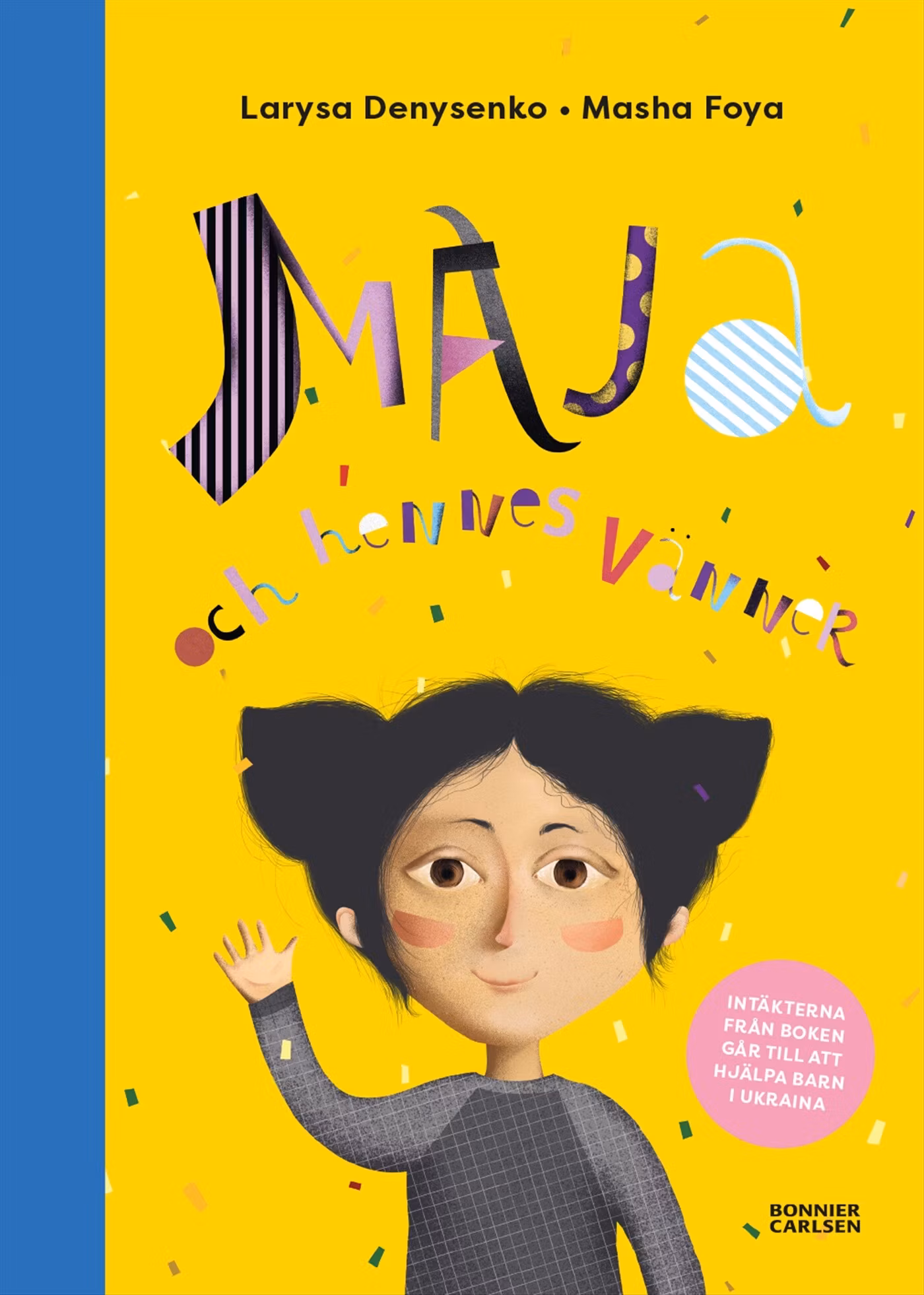 Sedan ockupationen av Krim 2014 har ukrainska familjer levt i skuggan av ett krigshot. "Maja och hennes vänner" gavs ut i Ukraina 2017 och är en berättelse om barn från flera olika ukrainska familjer. Bland dem finns barn i familjer som blivit tvungna att fly från Krim, liksom barn vars föräldrar har försvunnit. "Maja och hennes vänner" berättar om hur alla barn har rätt att leva i säkerhet, oavsett hur många föräldrar de har, om de är föräldralösa, har skilts från sina föräldrar på grund av krig eller har fått fly från sina hem. Alla Bonnier Carlsens intäkter från bokens försäljning går till Unicef Sverige och deras arbete med att hjälpa barn i Ukraina.Maja har sexton klasskamrater, alla med olika familjesituationer. Sofias pappa har försvunnit i kriget mot Ryssland, men hon hoppas att han ska hittas när kriget väl tagit slut. En annan Sofias föräldrar kunde inte få barn, men fick Sofia med hjälp av en ivf-behandling. Aksana bor med sin pappa eftersom hennes mamma är död. Krystyna bor med sin mormor eftersom hennes föräldrar arbetar utomlands. Rais är en tatar från Krim, vars familj var tvungna att lämna sitt hemland på grund av den ryska ockupationen. Timkos föräldrar är skilda och han bor ibland hos sin mamma, och ibland hos sin pappa. Petro är rom och hans familj är en stor klan. Och Maja, hon har två mammor."Jag skrev den här boken om barn från olika ukrainska familjer 2017, när Ryssland hade ockuperat Krim och delar av Donetsk och Luhansk. Jag skriver dessa ord nu (i februari 2022) från badrummet i mitt hem i Kyiv i dånet från en rysk angripares eld. Jag kan tänka mig att en av Majas klasskamrater nu ber i ett skyddsrum, en annan skriver ett brev till sin fängslade pappa i Ryssland, och en tredje har redan förlorat en älskad … Krig är alltid mot barn. Med den här texten vill jag skrika till världen att barnen i mitt land behöver internationellt skydd.” Larysa Denysenko är en välkänd författare i sitt hemland, advokat, människorättsaktivist, TV- och radiojournalist och medlem i ukrainska PEN.