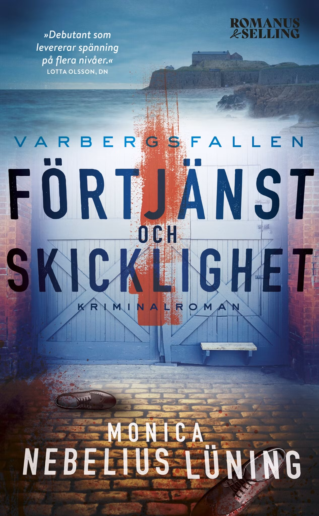 Debutant som levererar spänning på flera nivåer/Lotta Olsson, Dagens Nyheter"Missa inte denna debut"/Anders Kapp, KappraktEtt synnerligen brutalt överfallsmord skakar Varberg. En välkänd man ur stadens övre skikt har körts över inte en utan flera gånger tidigt i gryningen utanför Lilla Träslövs finbageri. Gabriella, polis, leder utredningen som tidigt pekar i en bestämd riktning. Till sin hjälp får hon Ingrid, ny domare vid tingsrätten, som återvänt till Varberg efter en några svåra år i en våldsam relation. De finner snabbt varandra i arbetet med att förhöra misstänkta och nysta i den avlidnes mörka familjehistoria. Plötsligt delar de sådant med varandra som de inte har berättat för någon, sådant som händer nästan alla, feghet som får avgörande konsekvenser men också sådant som gör dem till hjältar.Monica Nebelius Lüning, tidigare domare, debuterar med spänningsromanen "Förtjänts och skicklighet", den första boken i serien Varbergsfallen.