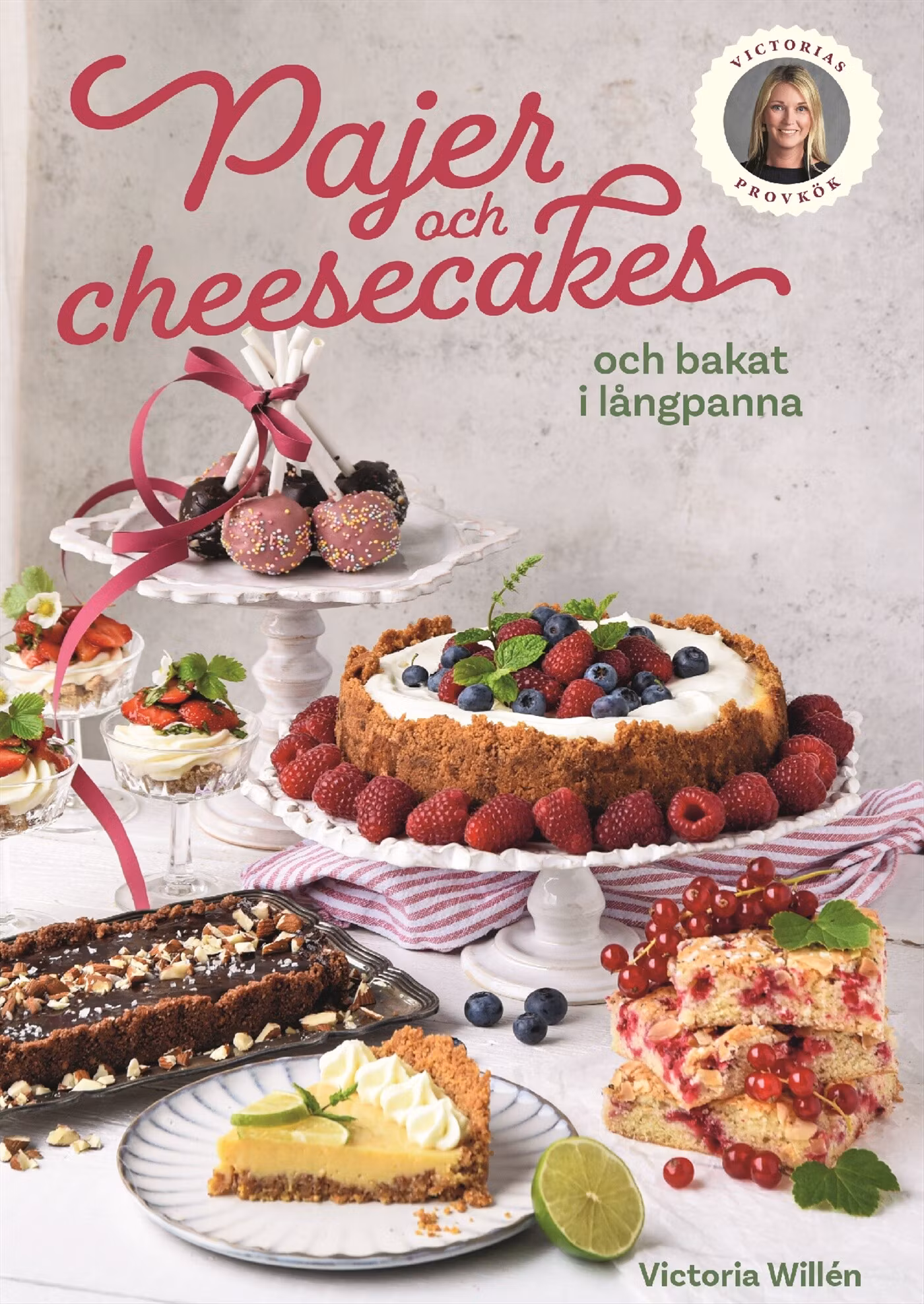 Fransk mandelpaj med vaniljkokta päron, marängsviss-cheesecake, chokladbollsmums eller citrontårta med italiensk maräng… Här finns bakverk för alla smaker och tillfällen! Välj bland drygt 50 recept på söta pajer, underbara cheesecakes, samt kakor och tårtor i långpanna – alla signerade Victoria Willén som driver den framgångsrika mat- och bakbloggen Victorias provkök. Victorias devis är att det ska vara enkelt och roligt att baka. Ingredienserna hittar du i din närmaste butik och även om vissa recept kan innehålla många moment handlar det aldrig om något svårt. Med hennes beskrivningar kommer alla klara av att baka godsakerna!