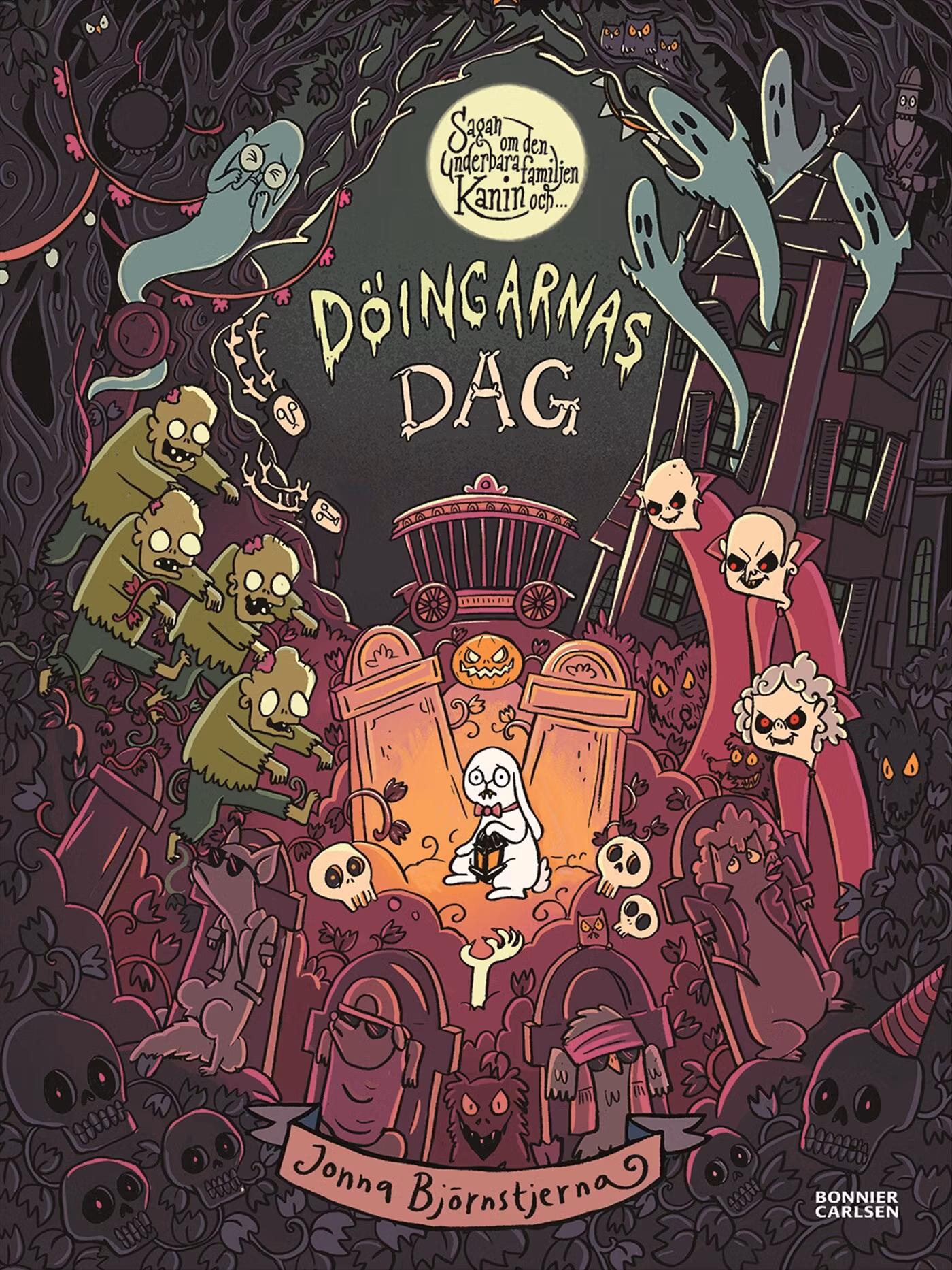 Äntligen dags för Döingarnas dag i Sagoskogen! Dagen då man som vanlig kanin, tomtenisse eller troll kan besöka sina spöken i Döskalledalen utan att bli jagad av vampyrer eller en hungrig zombie. Borgmästaren har beställt extra kött, blod och delikata hjärnor för att dalens invånare inte ska drabbas av hunger och ge sig på någon stackare. Men på grund av ett gäng "coola" typer och i viss mån olyckliga misstag från Lillebror Kanin går det inte riktigt som planerat. Rädde sig den som kan! Detta är den elfte boken om familjen Kanin (framförallt Lillebror Kanin) i Sagoskogen! En fantastik plats som både är alldeles underbar och alldeles, alldeles hemsk. Att bli lite lagom skrämd och lösa dilemman tillsammans med Lillebror Kanin är en läsupplevelse som också leder till samtal om mycket annat. Böckerna om Lillebror har hyllats och prisats av barnen själva, men också de vuxna runt dem i hemmet, på förskolan, skolan och biblioteket!"I Jonna Björnstjerna har den yngsta läsekretsen sin egen Stephen King." Petter Lindgren, Aftonbladet