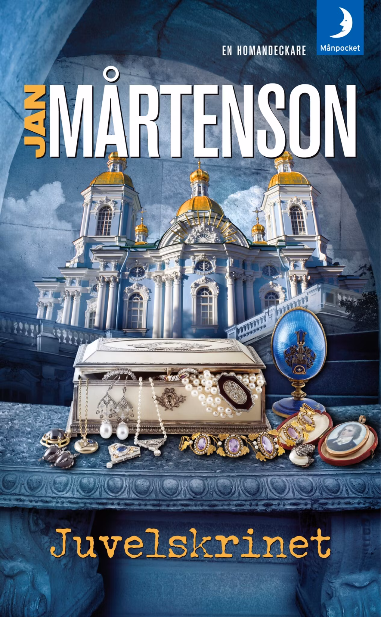 Juvelskrinet är den 42:a Homandeckaren av genrens mästare Jan Mårtenson! ”Bingo”, sa Erik. ”Bolin. Tsarens hovjuvelerare.” Johan Kristian Homan, den stillsamme antikhandlaren i Gamla stan, har bett sin kollega Eric Gustafsson att värdera ett magnifikt smycke som hans flickvän Francine har ärvt. Hon har också dokument som hävdar att andra smycken från det ryska imperiet gömdes i ett palats i Sankt Petersburg under revolutionen. Homan blir inbjuden till ett jubileum i sin gamla skola, med anor från 1300-talet och där Olaus Petri en gång var elev. Bland hans klasskamrater finns Leif Carlson, som utgjorde ett problem både för sig själv och för skolan, men som numera är framgångsrik affärsman i Ryssland och handlar med olja och naturgas. Han sitter dessutom på viktig, hemlig information om Rysslands energipolitik som kan få stora konsekvenser för omvärlden. Men han har problem. Han anklagas för förskingring, och vädjar till Homan om hjälp för att komma undan ett dödshot. Så försvinner Leif Carlson spårlöst. Sista gången någon såg honom var han ombord på flickvännen Ludmillas lyxyacht Red Lady. Motvilligt dras Homan in i en härva av mord, korruption och rysk maffia som sträcker sig från dagens Stockholm till den epok då oskattbara föremål skapades av världens skickligaste juvelerare för det kejserliga palatset i Sankt Petersburg. Och han får hårdhänt lära sig att den som inte ger sig in i leken inte heller behöver dra sig ur … Juvelskrinet är en annorlunda kriminalroman med dramatiska intriger kopplade till kulturhistoriska dimensioner från en svunnen värld.