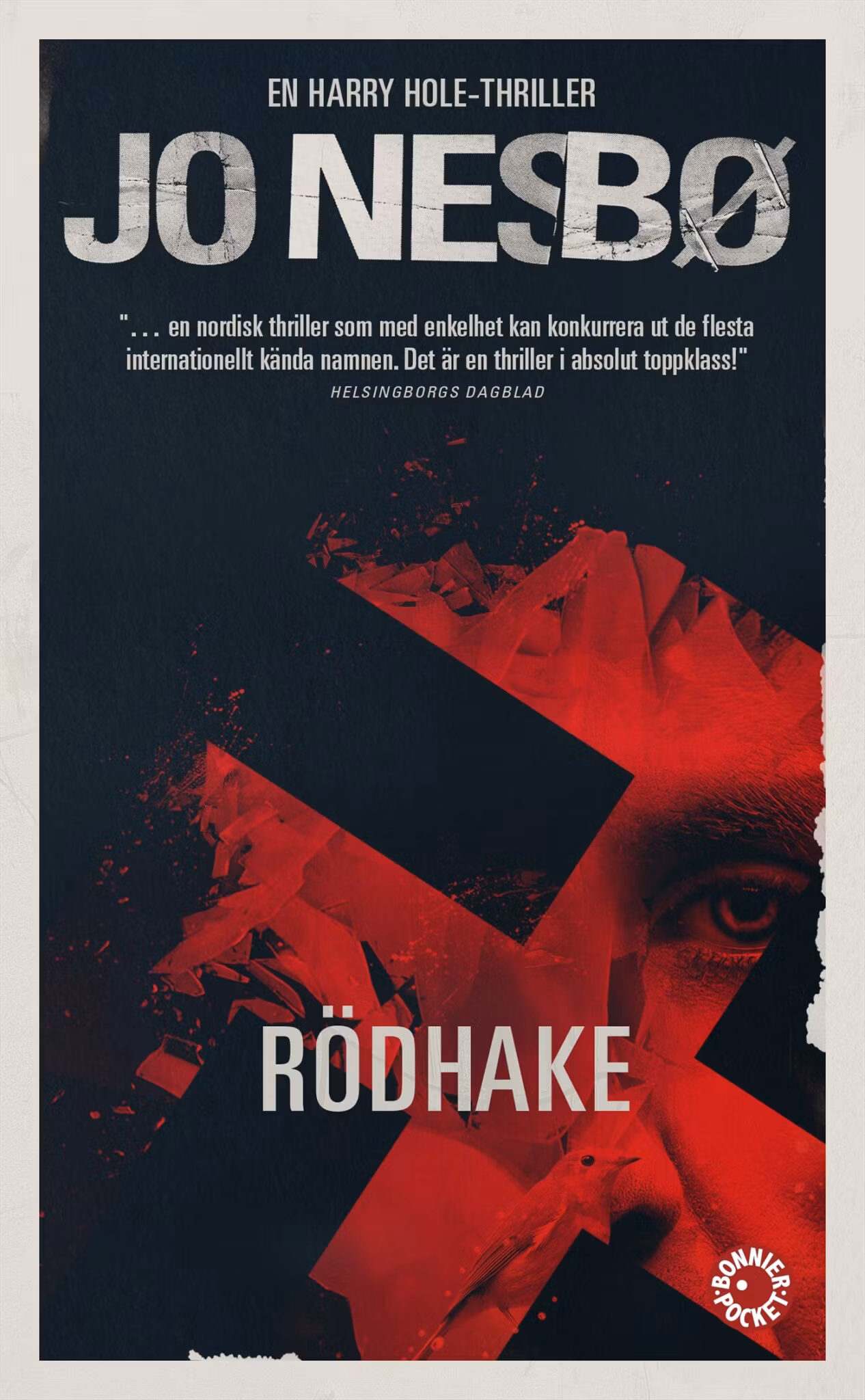 Harry Hole misstänker att en nynazistisk ledare med kodnamnet Prinsen arbetar inom Oslopolisen. Under utredningen får ett offer halsen uppskuren och ett annat skjuts på nära håll med ett gevär. Harry Hole konfronteras med en grupp från sitt lands mörka förflutna: de norrmän som krigade på Hitlers sida under andra världskriget. Och mördaren är inte klar med sin blodiga vendetta – näst på tur står en medlem ur kungafamiljen. Rödhake är Jo Nesbøs tredje roman om Harry Hole. År 2004 utsågs den till tidernas bästa norska kriminalroman.