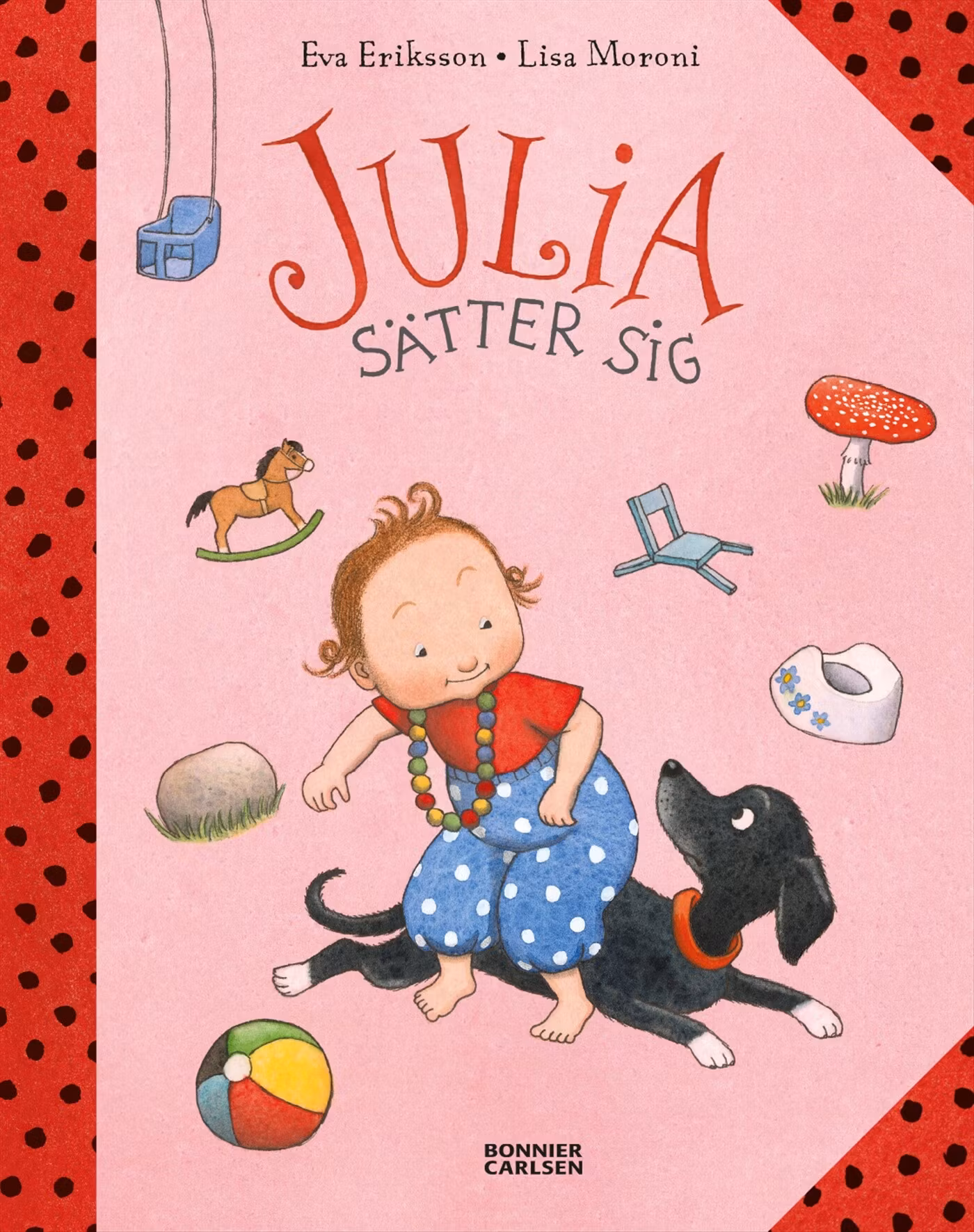 Kan man sitta här? Julia tycker om att prova. Utom i vagnen, där vill Julia inte sätta sig … Eva Eriksson och Lisa Moroni har skapat en serie varma och mysiga småbarnsböcker om oemotståndliga Julia. Vardagsnära berättelser med mycket humor och igenkänning för tvååringar och deras familjer. Julia och pappa ska gå iväg. Men Julia måste bara sitta lite på trappan först. Så ser hon en stor sten. Den måste hon prova! Den är jättebra att sitta på. Men gungan är bäst! Julia vill bara gunga. Nej, vagnen vill hon inte sitta i! Hon har faktiskt suttit färdigt för idag. Nu vill Julia ligga ner istället … I Julia-böckerna möts tre generationer i ett spännande samarbete. Eva Eriksson och Lisa Moroni, mor och dotter, både skriver och illustrerar böckerna tillsammans, och Lisas dotter Julia står för inspirationen. Läs också: Julia gömmer sig, Julia hämtar strumpor och Julia äter allt.