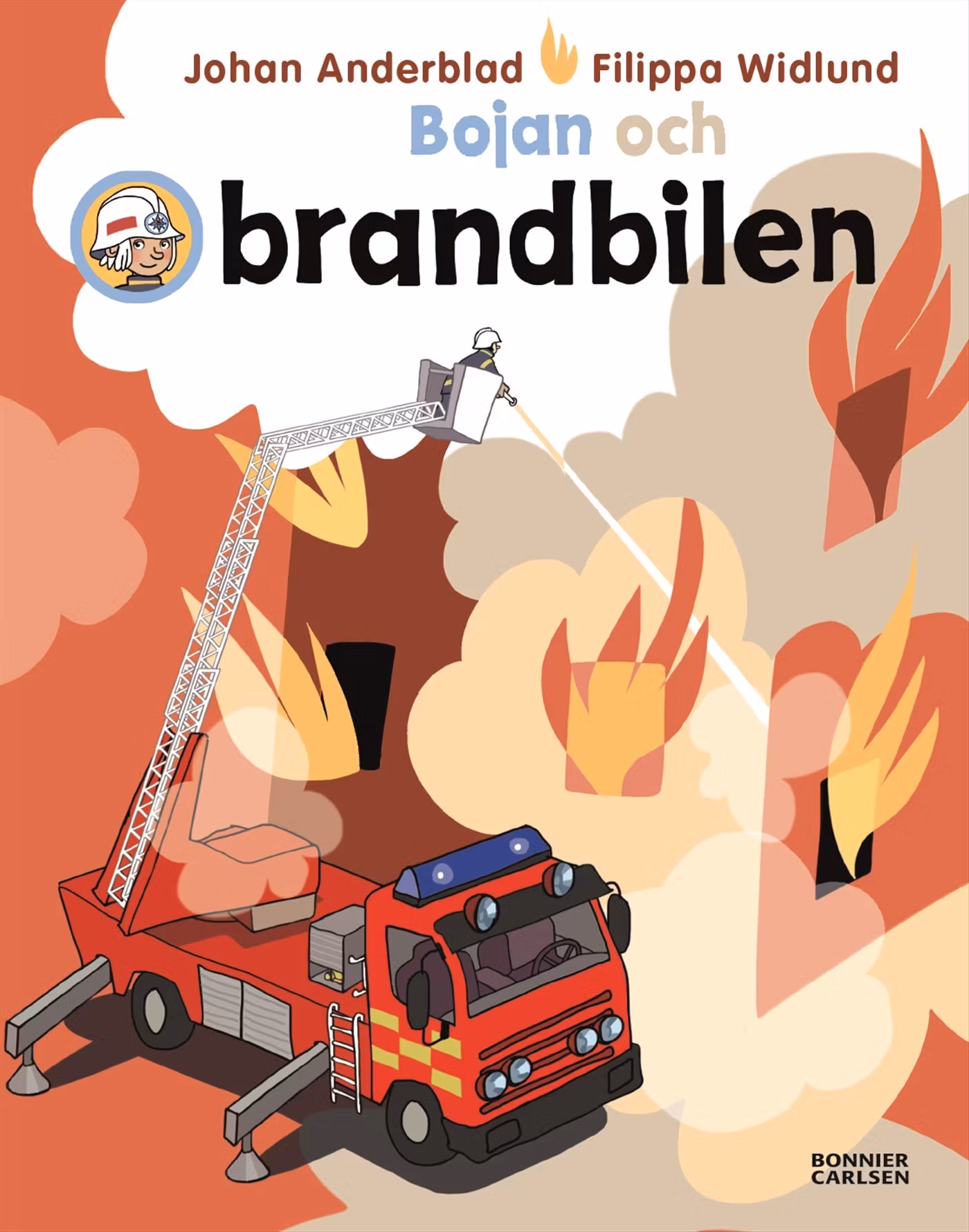 Både fakta och saga. Bränder ska släckas och djur räddas. Allt på en lagaom nivå för fyraåringen av Bolibompas Johan Anderblad som kan allt om stora fordon. Djuplodande och verklighetsbaserat utan att vara för långt för att högläsas om och om igen!Bojan ligger i sängen och försöker somna när han kommer att tänka på att han såg en brandbil tidigare under dagen. Han frågar sin mamma Bibbi om hon har kört en brandbil någon gång, och det har hon ju, för hon har kört nästan alla sorters bilar. Hon har till och med jobbat som brandman och berättar för Bojan om allt kring brandbilen och hur den kan släcka bränder.Efter ett tag kommer Bojans katt Tussan och stör. Hon välter ner hans brandbilar och ambulanser från hyllan ovanför sängen. Bojan frågar om mamman räddat något djur någon gång. Visst har hon det. När hon jobbade som brandman en gång var det en uggla som hade skadat sig på en elledning och fastnat högt upp i en ek. Med hjälp av en djurvårdare och stegbilen lyckas Bibbi få tag på ugglan så att djurvårdarna kan ta över. Det är spännande, men Bojan kan ändå till slut komma till ro och somna. Johan Anderblad, den välkände programledaren från Bolibompa, gör med böckerna om Bojan debut som författare. De många progam han producerat om fordon för SVT har gjort att han blivit något av en expert vid det här laget. Han känner sin målgrupp och kan med van hand skriva så att det blir både spännande och intressant då barnen är som mest fascinerade av stora fordon. Illustrationerna är gjorda av Filippa Widlund som med mjuka runda former gör fordonen helt korrekta men samtidigt lätta att känna igen.Läs också Bojan och polisbilen eller pyssla i Måla och pyssla med Bojan.