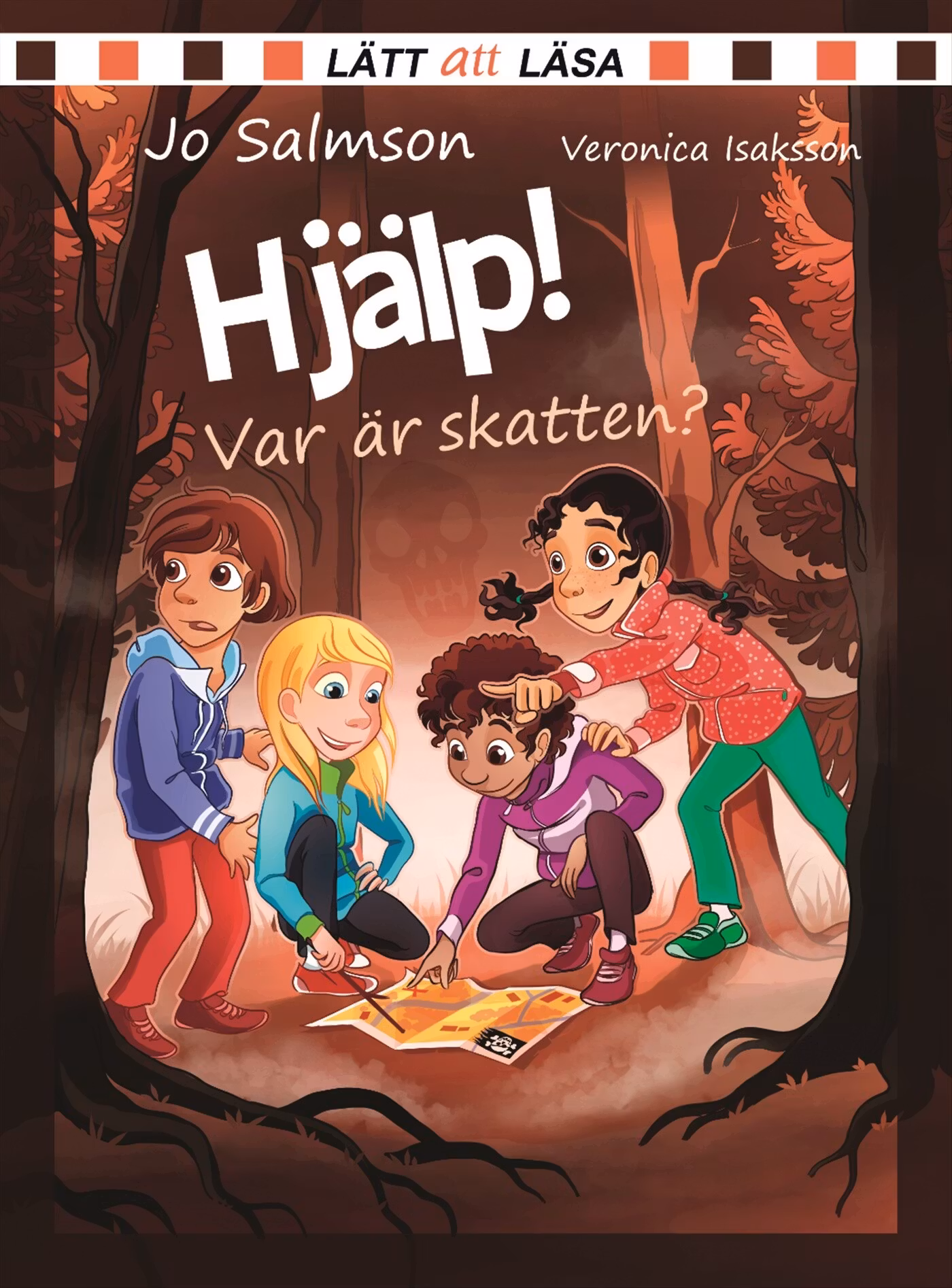 Barnens favoritförfattare – Jo Salmson – tar med nybörjarläsarna på ännu ett spännande och lite läskigt vardagsdrama i lågstadiemiljö. Det är dags för skattjakt i skolan!I skolan har vi lärt oss om kartor och nu ska hela klassen ut på skattjakt!Fröken har gömt flera piratskatter i närheten av skolgården. Hon delar ut kartor till alla: Jag, Leonita, Samir och Shania är i samma grupp. Vår skatt ska ligga under en parkbänk. Men hjälp! Det sitter ett par okända gubbar på bänken ...Jo Salmson tar med nybörjarläsarna på ännu ett spännande och lite läskigt vardagsdrama.Med få ord förmedlar hon starka känslor och spännande situationer tillsammans med Veronica Isakssons tuffa illustrationer. Det här är den fjärde boken i Hjälp-serien.I den serien kan du även läsa dessa böcker: Hjälp! Jag gjorde illa Linn Hjälp! Jag tappar bort en hund Hjälp! Jag hittar ett fusk Lättläst och lite läskigt i lågstadiemiljö. Böckerna ingår i serien: Lätt att Läsa.