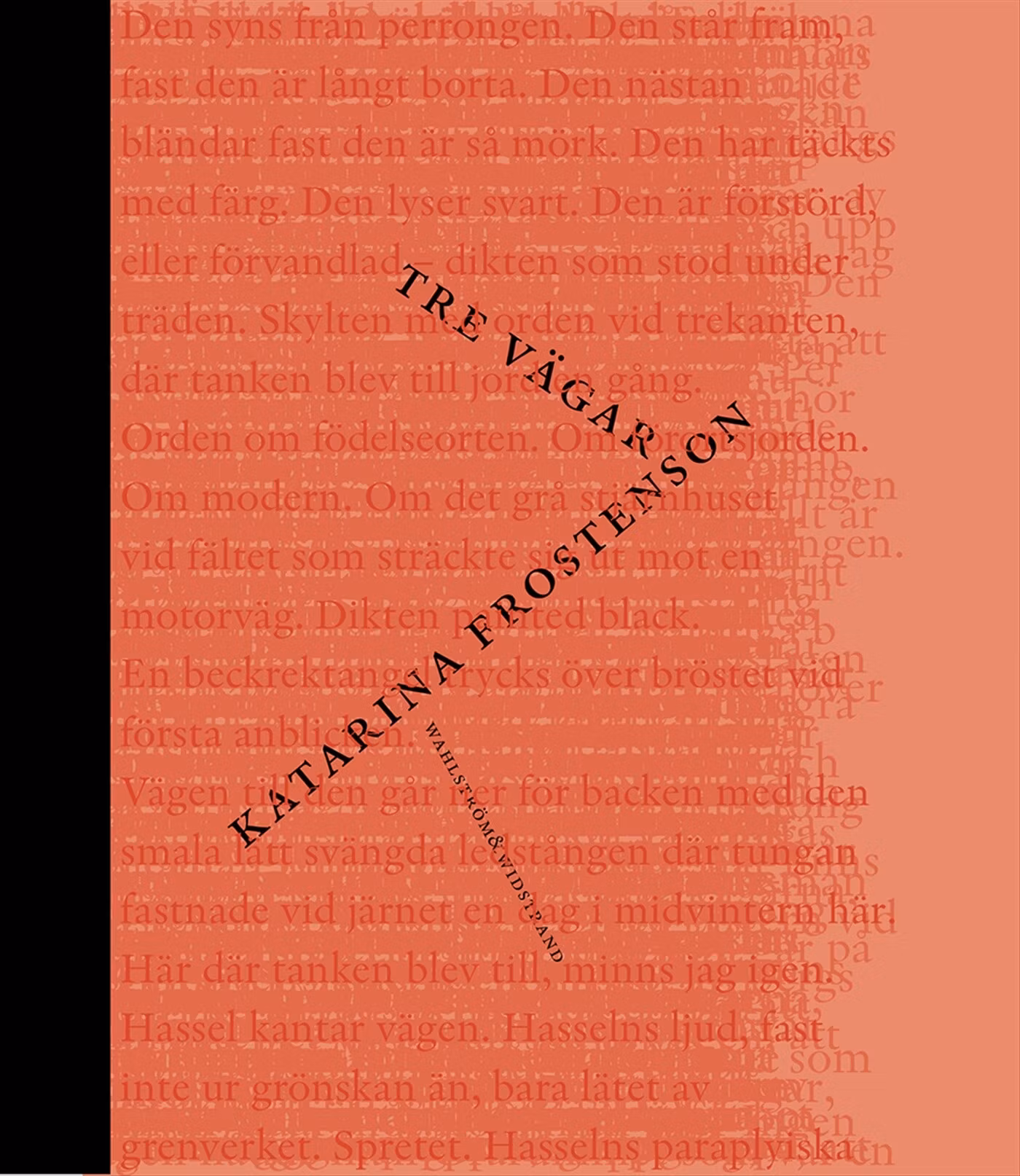 Tre vägar är en treklöver texter på prosa som ibland övergår i dikt. De är vandringar på vägar i Europa, över stigar i förorten och i strändernas öppna natur. De rör sig i verkliga landskap och strövar fritt i tanken utifrån ord, bilder och ögonblick som uppstår under vägen. Berättelserna samtalar om platsens betydelse för skapandet, om minne och glömska, om språkets kraft och konstens makt, om levande och döda, om modern, och om att gå vidare.I en av berättelserna, ”Konstvandringen” är vi på väg till ett fängslande konstverk, bort från lidande och sorg. I en annan, ”Svartmålningen”, blir ett förstört diktverk upptakten till en resa genom barndomens förort där konstnärer som Carl Jonas Love Almqvist, Gennadij Ajgi och Louise Bourgeois närvarar. Strändernas utsatta läge, som ofta undersökts och besjungits i Frostensons böcker, är spelplatsen i en tredje text, ”Strandränderna”. Texternas tonfall skiftar, det är sakligt, lyriskt, vasst, ömsint och ibland dråpligt. Både självbiografi och förvandling. De tre delarna samtalar med varandra och med tidigare texter i Frostensons poetiska värld, samtidigt som de med sina ämnen och tonfall bryter ny mark i författarskapet. Det är inspirerade och inspirerande ord som hela tiden befinner sig i rörelse.