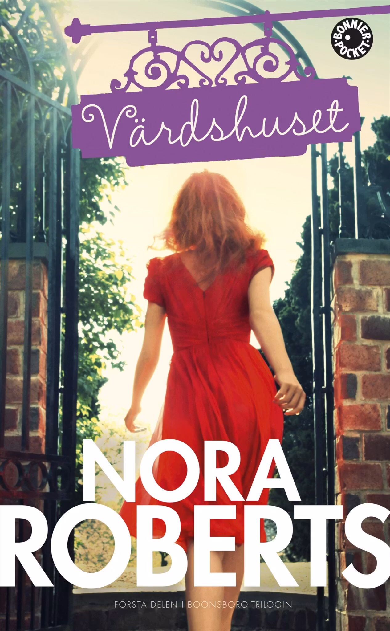 Värdshuset är första delen i en ny romantisk trilogi som utspelar sig i den lilla staden Boonsboro i Maryland. Här bor de tre bröderna Montgomery som tillsammans med sin viljestarka mamma just börjat rusta upp stans förfallna värdshus, som de vill förvandla till ett modernt och charmigt hotell. Men familjens arkitekt, Beckett, har inte bara renovering i tankarna… I staden bor också den unga änkan Clare Brewster, som flyttat hem med sina tre små söner och öppnat en bokhandel i närheten av värdshuset. Beckett har varit hemligt förälskad i Clare sedan skoltiden, men alltid dolt sina känslor. Till sin förvåning upptäcker Clare att hon dras till det gamla värdshuset och till mannen som ritat det. Kommer deras kärlek att få en andra chans, nu när allt är på väg att förändras i Boonsboro? Nora Roberts är född och uppvuxen i Maryland, och i sin senaste romantrilogi har hon inspirerats av staden Boonsboro, där hon bor med sin familj. Liksom i böckerna har hon rustat upp ett gammalt värdshus som nu är hotell.