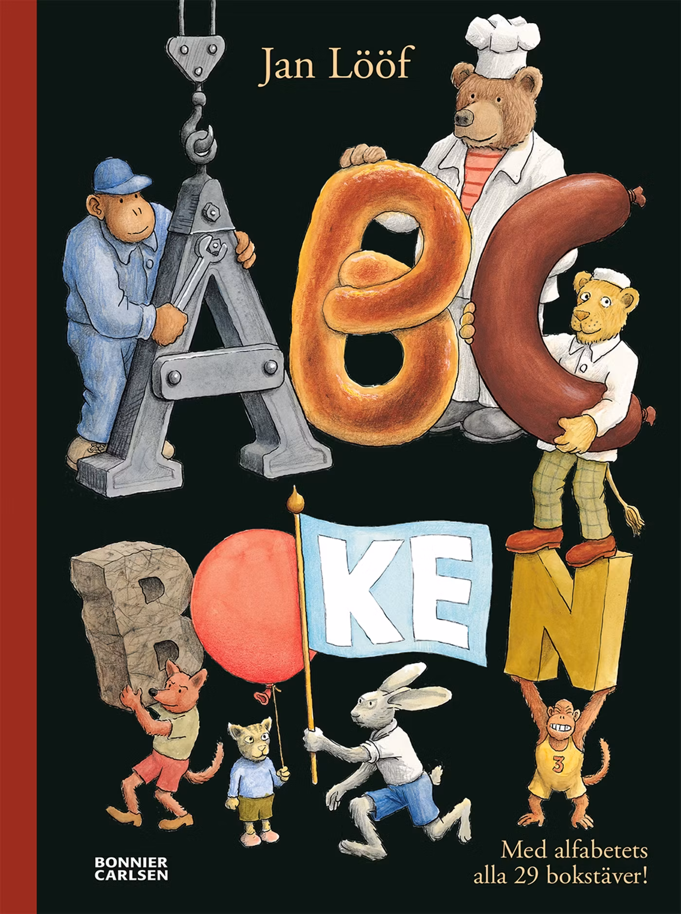 Vilka bilder dyker upp i ditt huvud när du tänker på Janne Lööfs illustrationer? Bilar och andra mekaniska manicker, apor, uppfinningar, troll, musiker, en och annan liten tant och fantastiska äventyr kanske? I ABC-boken hittar du allt detta och massor av andra saker, från apa till ödla! Ibland följs händelser upp över två uppslag, t ex apan som faller så illa på cirkusen på C blir omplåstrad av en doktor på D. Eller att apan som handlar en slägga i järnaffären på J använder den för att slå ner pålen som kamelen på K är bunden vid. Janne Lööf har varit helt fri att göra de illustrationer han har tyckt passa respektive bokstav och därför är den här boken lyckligt befriad från att upprepa de sedvanliga bilder som brukar dyka upp i abc-böcker. Utom kanske när det gäller apa på A (aporna är våra följeslagare genom boken) och bokstäver som X och Z där vårt språk inte ger mycket val... Hellre stort och spännande än litet och vardagligt! Om ni har läst det första stycket noga såg ni att den här boken avviker något från vårt standardformat för att ge illustrationerna mera svängrum. Tanken är att den här abc-boken ska väcka nyfikenhet och ge en rik och fantasieggande bildupplevelse några år innan barnen hamnar på skolbänken.
