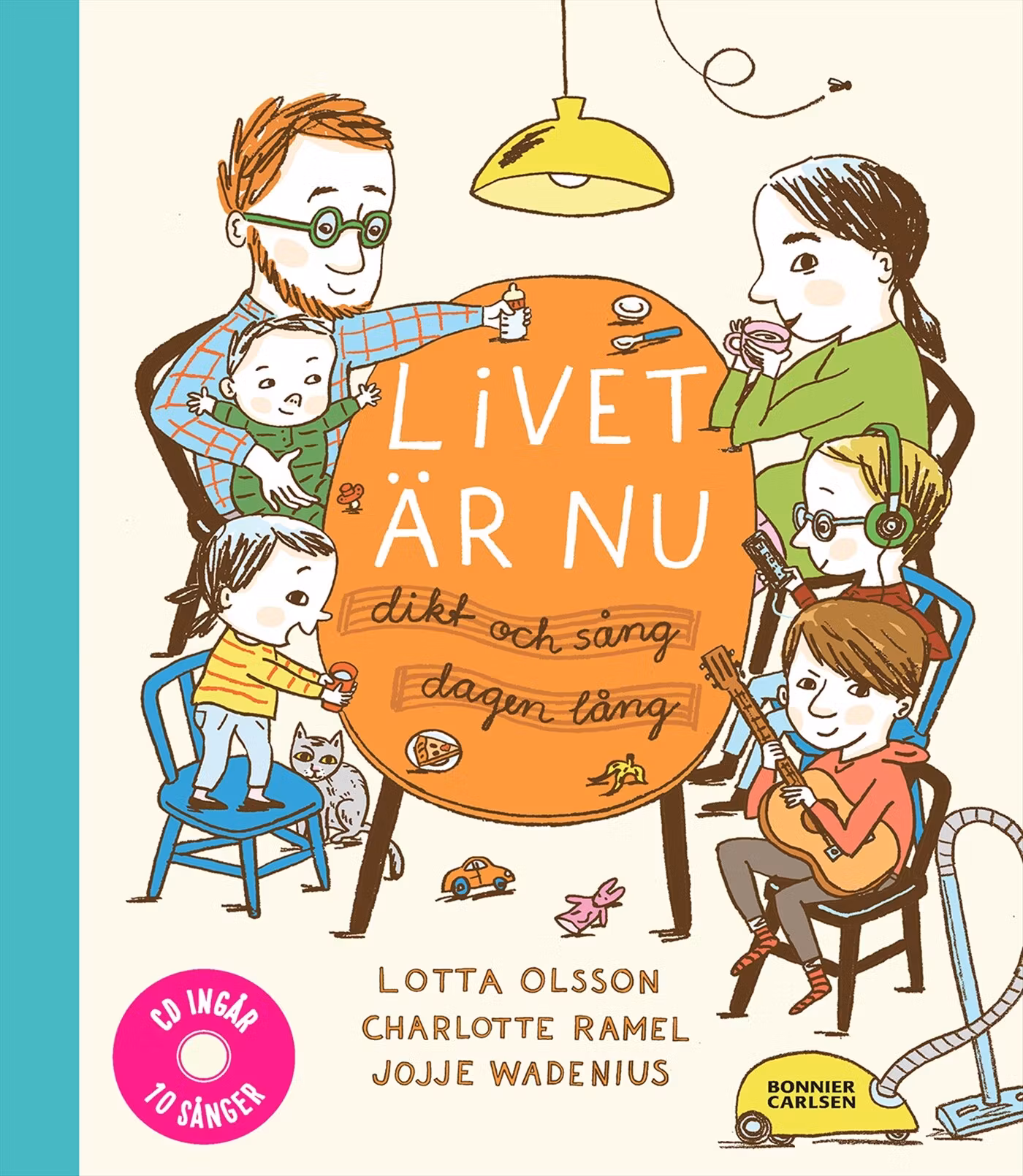 Lotta Olsson, Charlotte Ramel och Jojje Wadenius möts i en poesi-musikbok med CD-skiva. Ett generöst illustrerat allkonstverk för hela familjen, perfekt som dop- eller börja skolan-present. Tänk dig illustrerad poesi för en hel dag. Vi följer en familj från morgon till kväll. Här finns en dikt för varje stund, för varje stämning: när man vaknar, klär på sig, går till förskolan, bakar pizza, är ledsen, glad eller ska sova. Här ryms stort och smått, högstämt och knasigt i korta och långa dikter för både yngre och lite äldre barn."Livet är nu" är ett unikt allkonstverk med 30 fristående dikter som binds samman av illustrationerna om en familjs vardag. Charlotte Ramels mjuka och inkännande bilder berättar om en mamma, pappa, tre barn och en katt. Lotta Olssons texter består av en härlig blandning av nyskrivet material samt tidigare utgivna favoriter. Jojje Wadenius har tonsatt tio av dikterna och sjungit in dem på CD-skivan som ingår i boken. Lugn musik varvas med lite jazzigare. Med "Livet är nu" skapar Olsson, Wadenius och Ramel en ny klassiker inom barnpoesi-musiken. Läs, titta och sjung tillsammans hela familjen!
