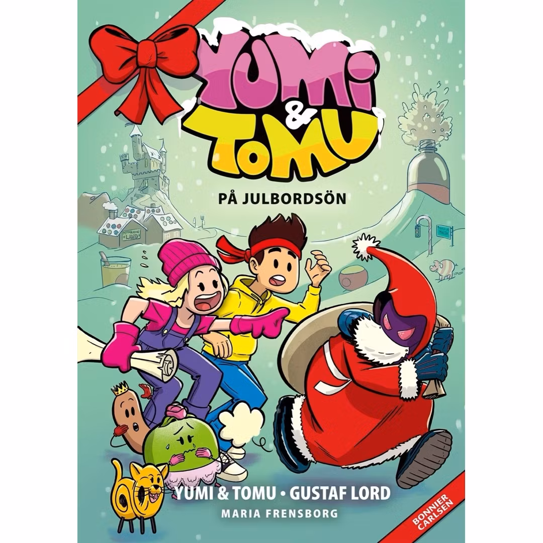 När Yumi & Tomu ska handla julklappar händer något oväntat, de sugs in i en bok och hamnar på en mycket märklig plats. Omgivna av talande prinskorvar, skumma tomtar och ordvitsande köttbullar inser de två vännerna att de ramlat ner på Julbordsön! Här har Paketmästaren ställt till med problem. Rackarns julbananer!Böckerna om Yumi & Tomu är rikt och klurigt illustrerade av Gustaf Lord. Det här är en kortare och mer lättläst berättelse som passar perfekt för nybörjarläsare som gillar humor och knasiga upptåg. Yumi & Tomu är youtubers från Uppsala som blivit otroligt populära. Genom att göra roliga och kärleksfulla videor vill de skapa underhållning för barn, med snällare tilltal än mycket annat som finns på Youtube. Och med många hundratusentals följare är det lätt att konstatera att de lyckats.
