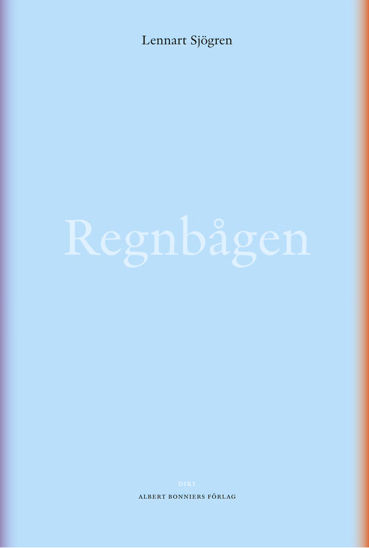 "Regnbågen" är en sammanhängande diktberättelse i en Sjögrensk precis och mjuk poesi.